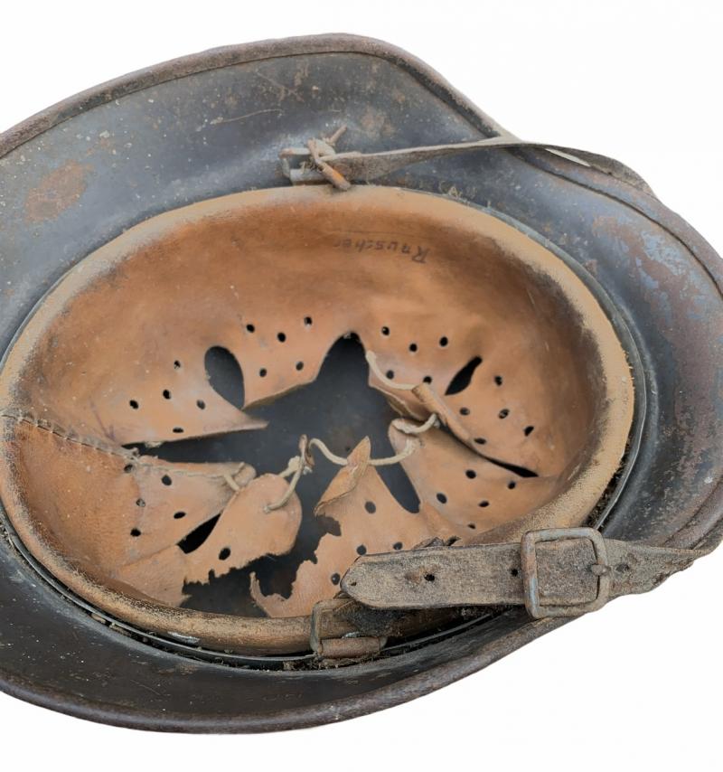 Maker code marked “Q” which is “Quist” in good size “66” the helmet comes with its original untouched and never being cleaned liner in size “58” and its original leather combat helmet strap.