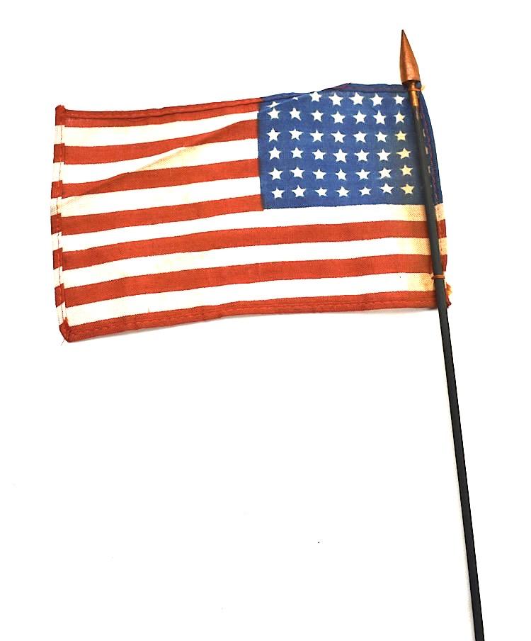 US WW2 48 star Little Flag on pole Very nice made little US WW2 48 star flag on a pole In very good condition.