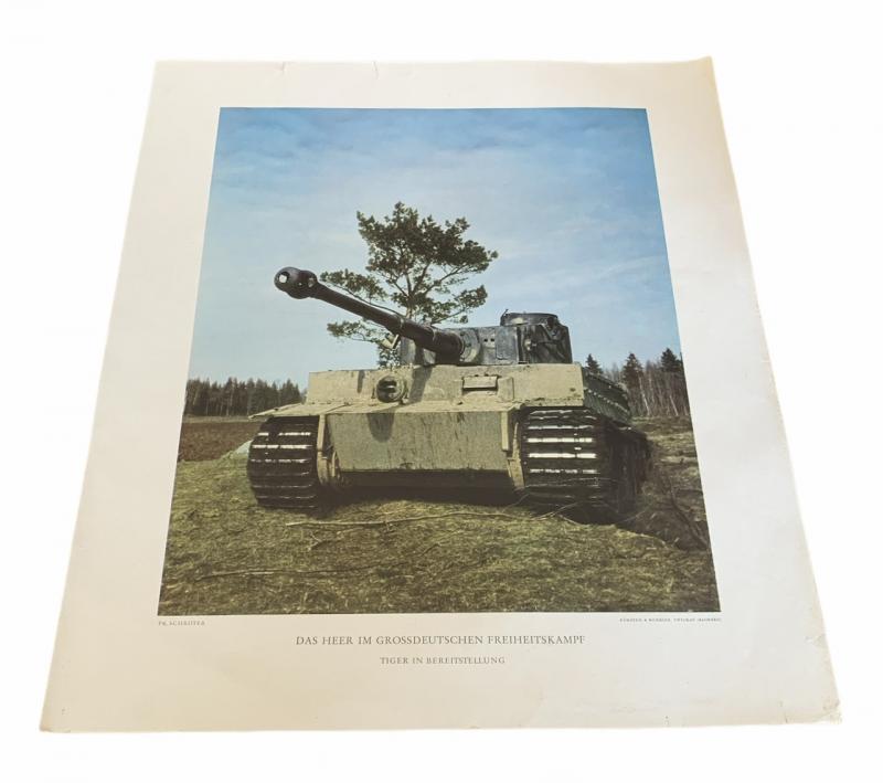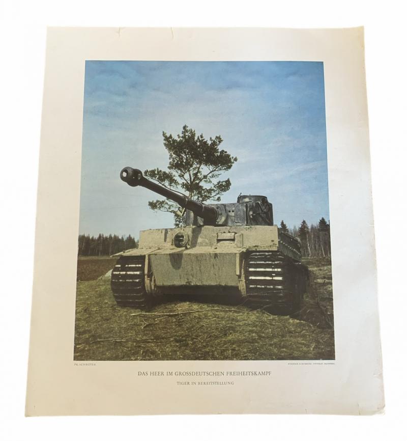 Very nice Tiger Tank Poster Very nice big size 32 x 37 cm full color “Tiger 1” tank poster for an official art series “Das Heer im Grossdeutsche Freiheitskampf” Fantastic to be framed as wall decoration!