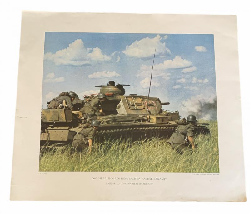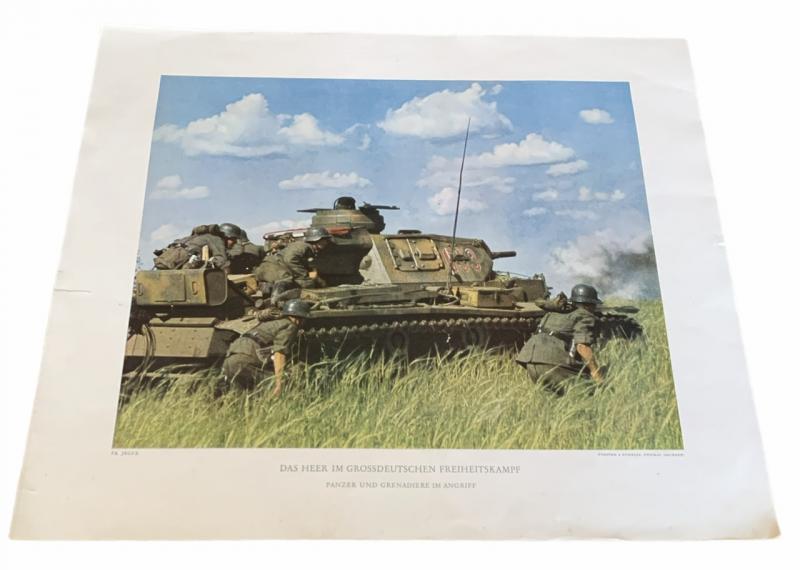 Very nice big size 32 x 37 cm full color “Panzer 4” tank poster for an official art series “Das Heer im Grossdeutsche Freiheitskampf”