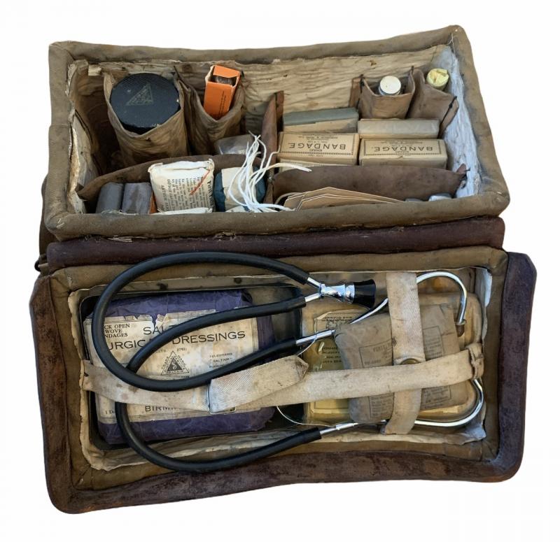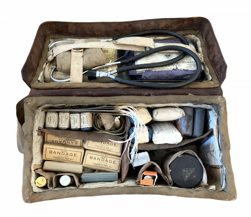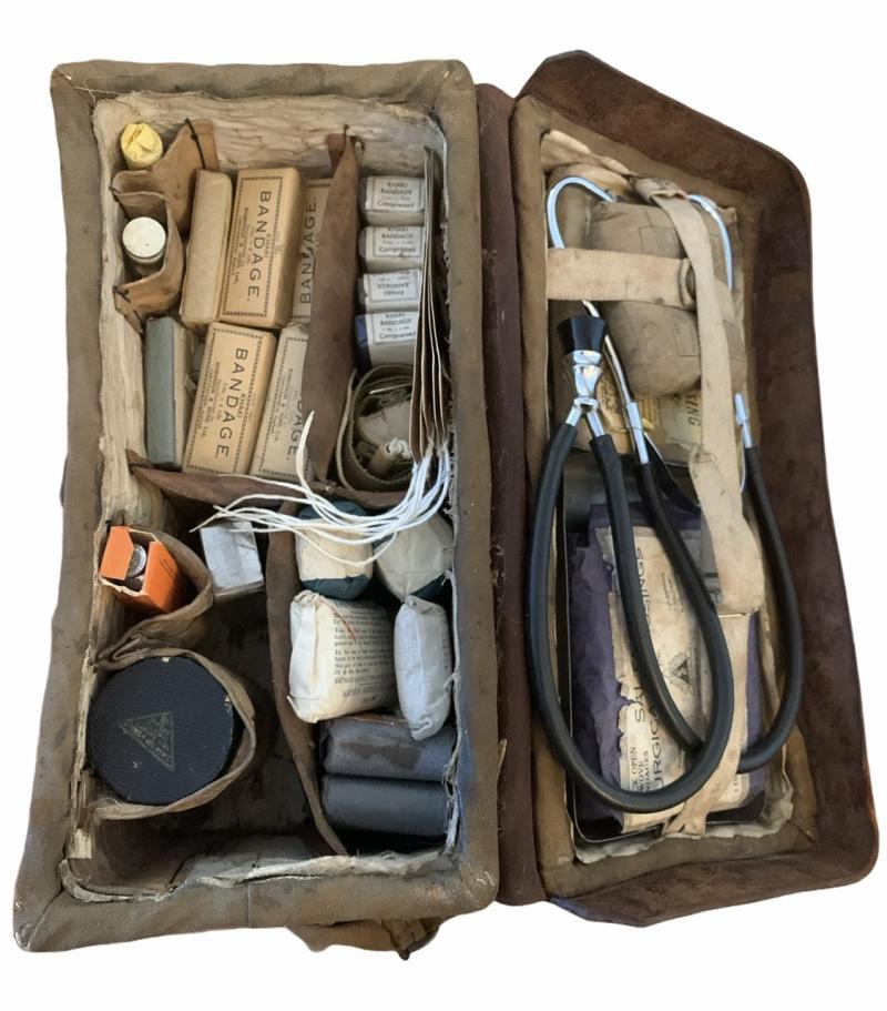 Fantastic rare British WW2 medical Regimental pannier full with medical content.