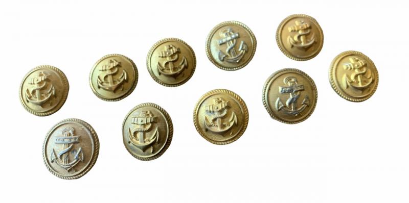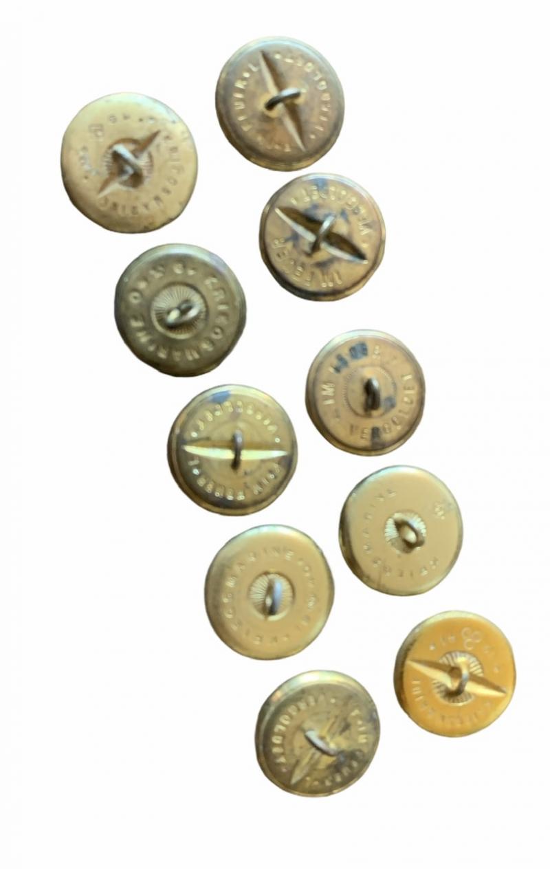 10 Kriegsmarine Buttons Perfect to complete a nice Kriegsmarine Nice gold colored “Kriegsmarine” marked buttons In used but very good condition.