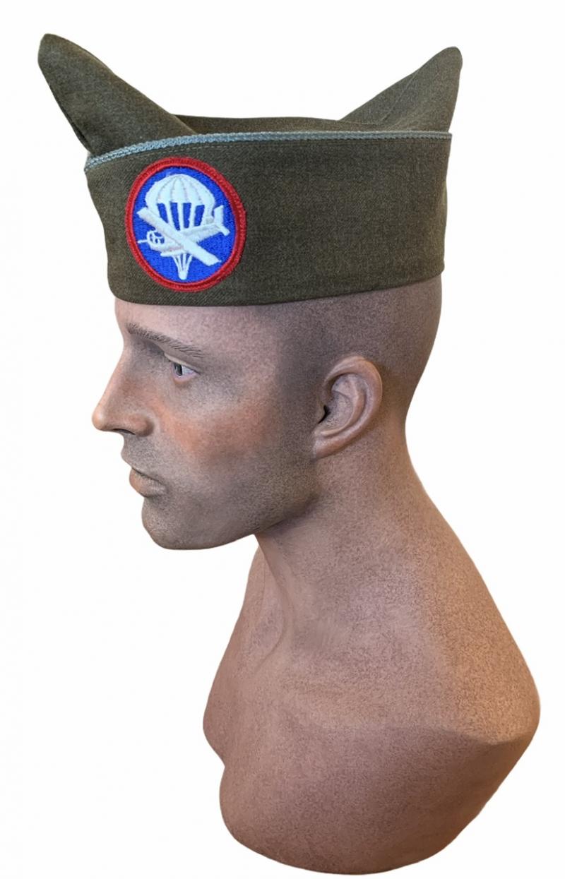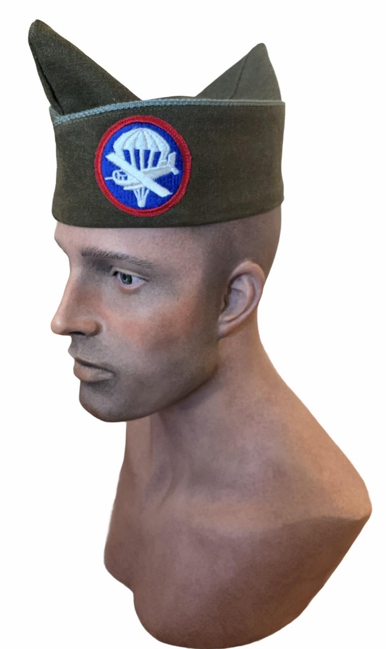 Very nice US WW2 “Airborne” so-called “Garrison” cap for Paratroopers and Gliderborne enlisted soldiers. Marked with owners initials and complete with original sewed nice “Airborne” patch.