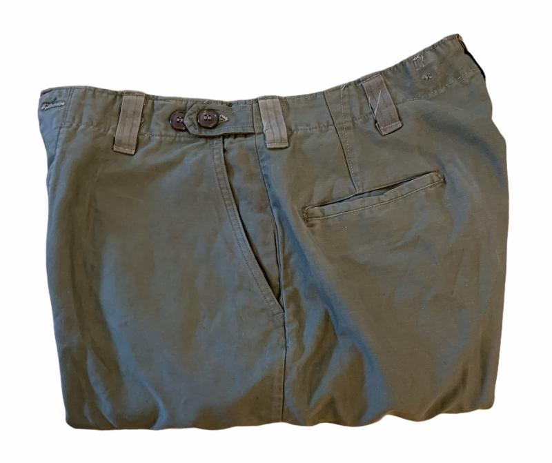 US WW2 M43 Trousers Nice used US WW2 M43 trousers With cloth label but washed. But good wartime model With tightening strap pointing to the front! In very good mannequin size and condition.