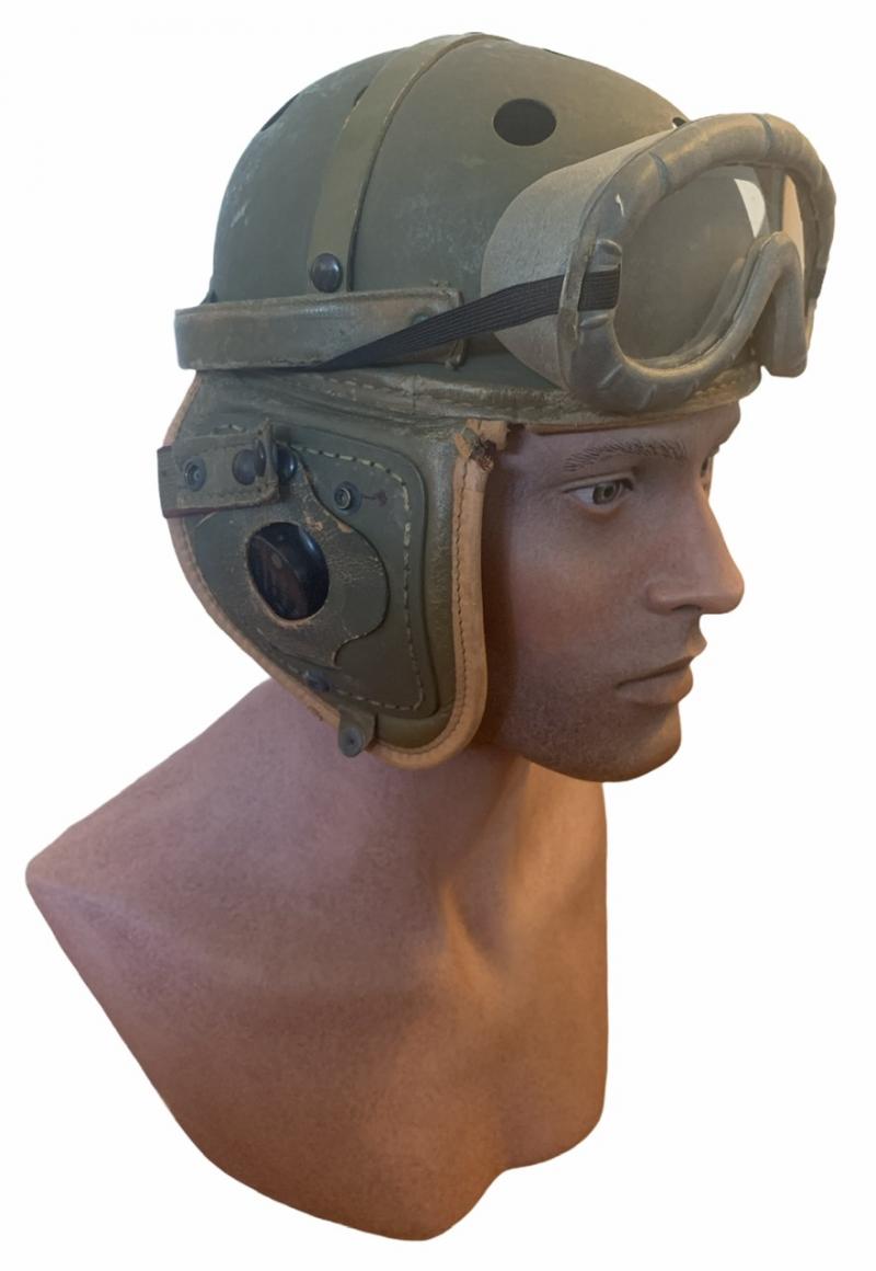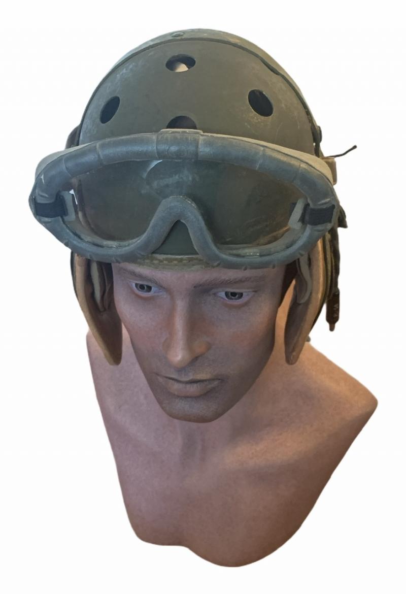 The helmet comes with a rare to find US WW2 rubber Tank crew pair of dust goggles.