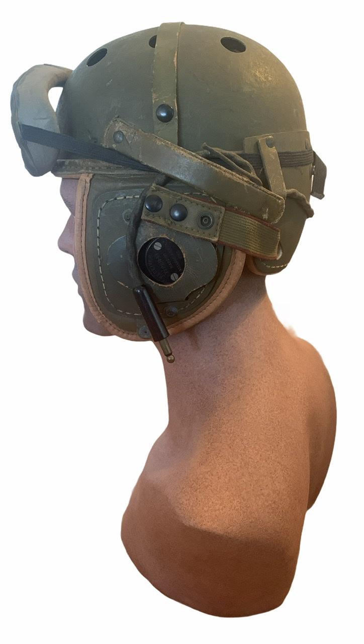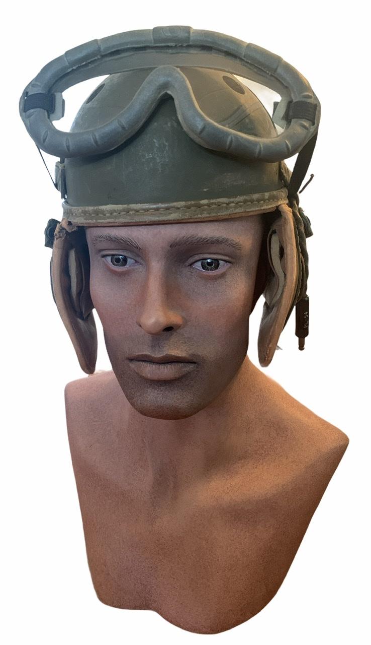 Made by “Rawlings” in good mannequin head size “6.7/8” very nice US WW2 Tank crew helmet complete with its original headphones