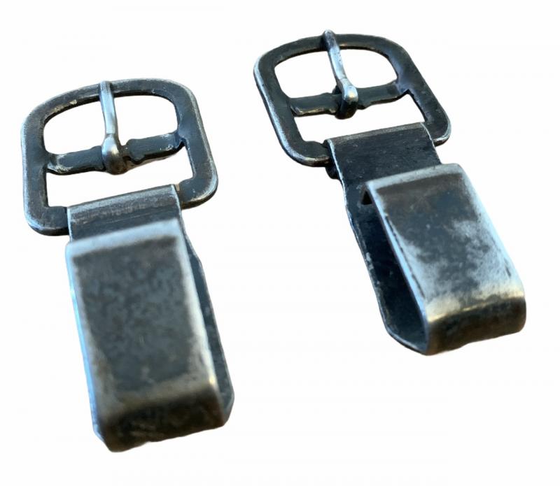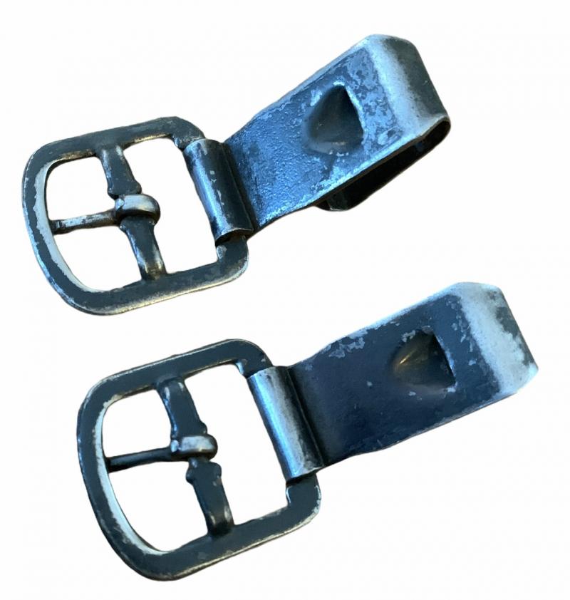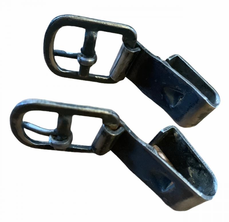 Wehrmacht metal Y Strap (Ammo Pouch) Hooks Fantastic to complete a Wehrmacht combat “Y” strap Or replace a broken hook. In used but good condition.