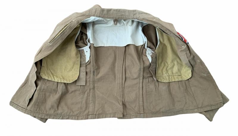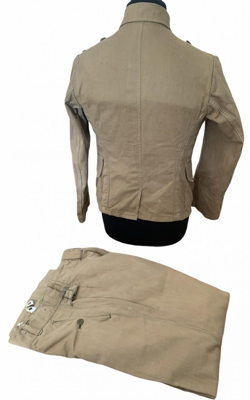The tropical trousers are marked “Neuerner Waeschefabrik” the tunisc is a first model with inside pockets which later versions did not have anymore.