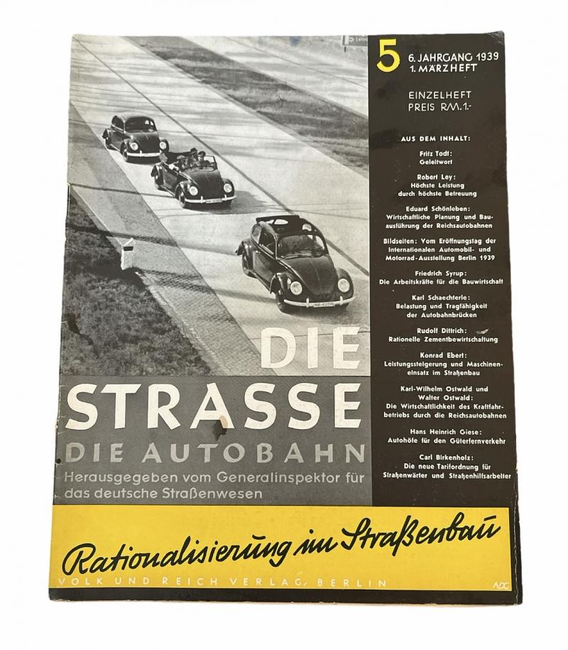 Die Strasse Die Autobahn Third Reich Magazine Dated “March 1, 1939” Nice magazine about the German Highway In very good condition.