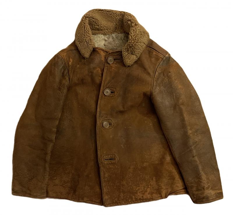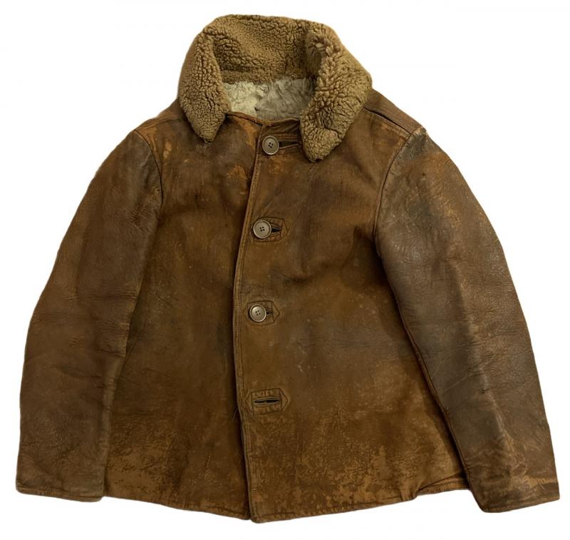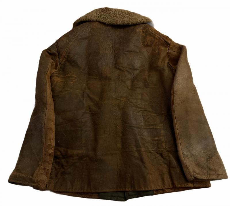 Nice used British WW2 leather “Jerkin” converted to leather coat. Which was officially not allowed to do, but pictures know of British soldier wearing similar coats in the war. In used but good condition.