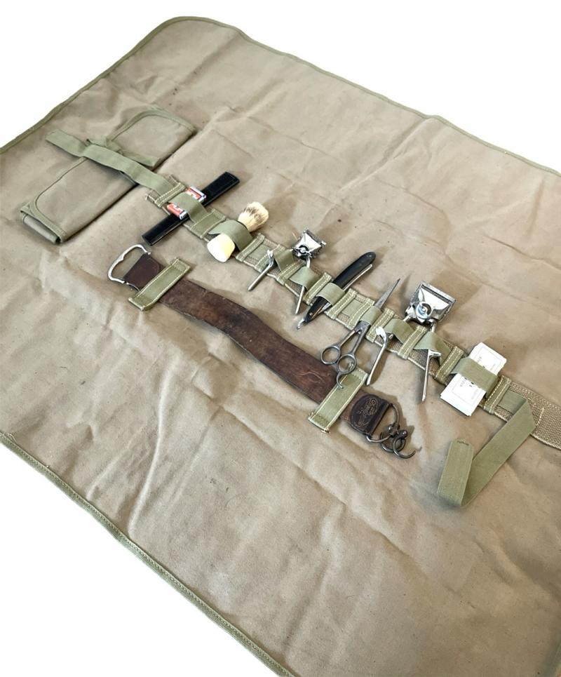 Nice near mint and rare to find canvas role with original US WW2 regimental “Barber” equipment