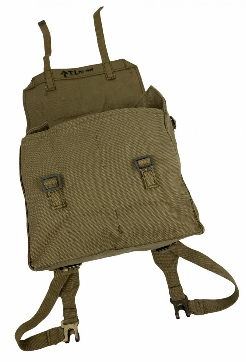 British Small Pack with Shouder Straps Mint British WW2 small pack with Shouder straps Made by “T Ltd.” and dated “1944” Impossible to upgrade!