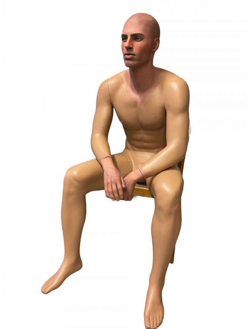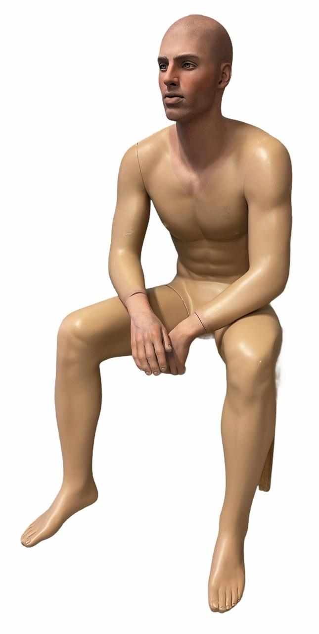 Custom painted sitting Mannequin Fantastic custom painted mannequin Mannequin brand “Hans Boot” Custom painted by “Roel Brink” Outstanding sitting mannequin in very good condition Great for a display!