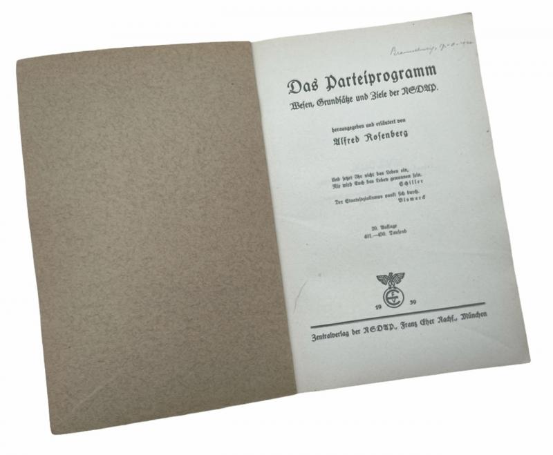“Das Partei-Program, Wesen Grundsätze und Ziele der NSDAP” nice decorative brochure in very good condition.