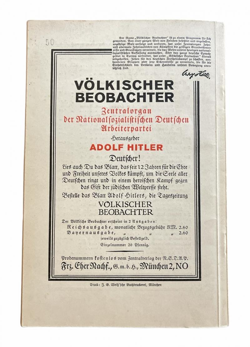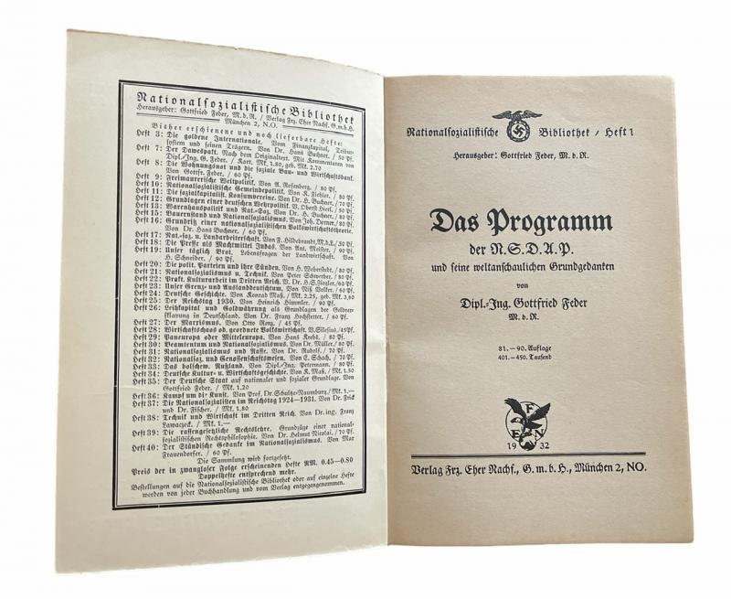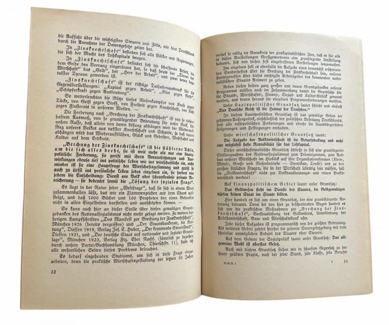 The NSDAP (National Socizialistische Deutsche Arbeiter Partij) brochure with the party program by