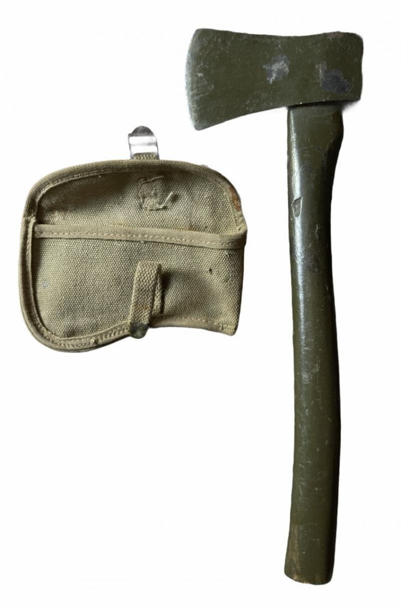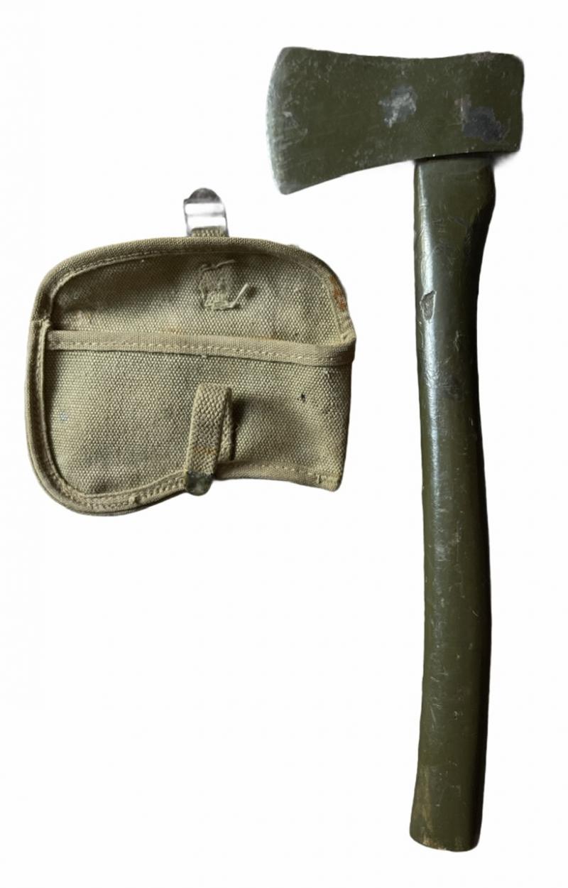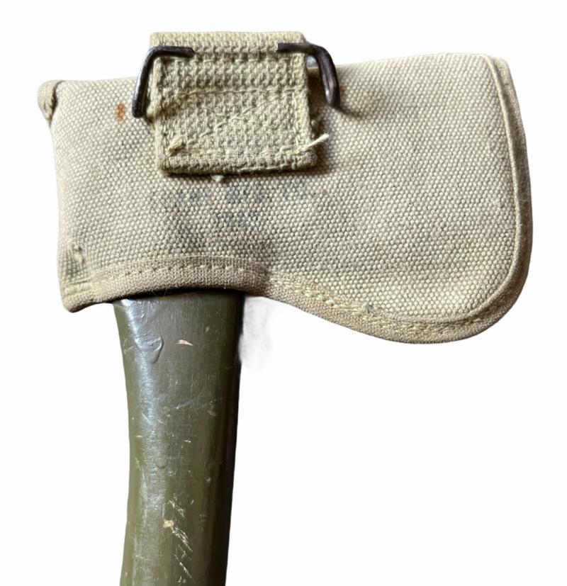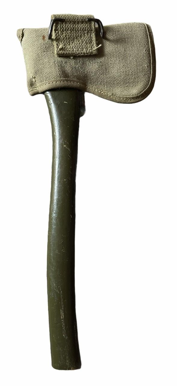 US WW2 Axe in Cover Nivce used US WW2 axe in its original cover Maker marked and dated “1944” Nice to complete US WW2 combat gear!