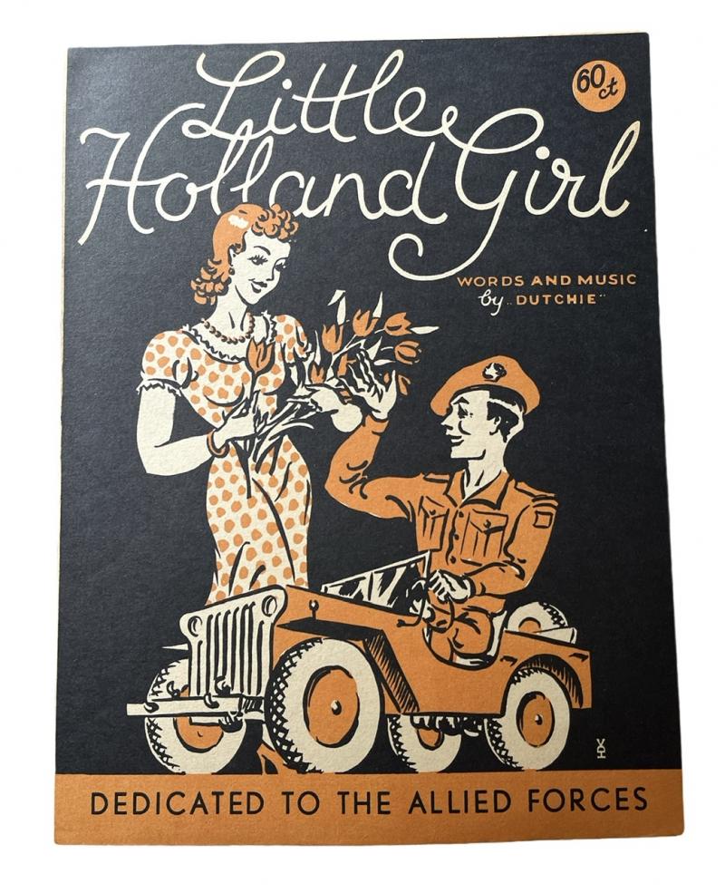 Dutch Sheet Musik for the Allied Soldiers “Little Holland Girl” by “Dutchie” Dated “1945” and printed in “Rotterdam” “Dedicated to the Allied Forces” In very good condition.