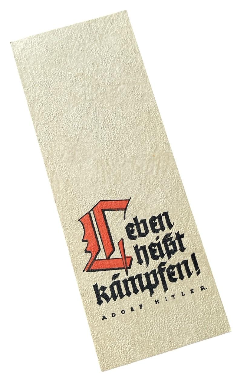 Third Reich Book Mark with Adolf Hitler Statement “Leben heist Kämpfen!, Adolf Hitler” In very good condition!