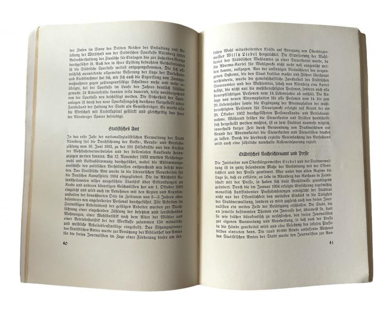 NSDAP Brochure Very early NSDAP brochure “Bericht über die Arbeid der Stadtverwaltung Nürnberg im Ersten Jahr des National Sozialischtischen Deutschlands” Dated March 1933 - March 1934 In used but very good condition!