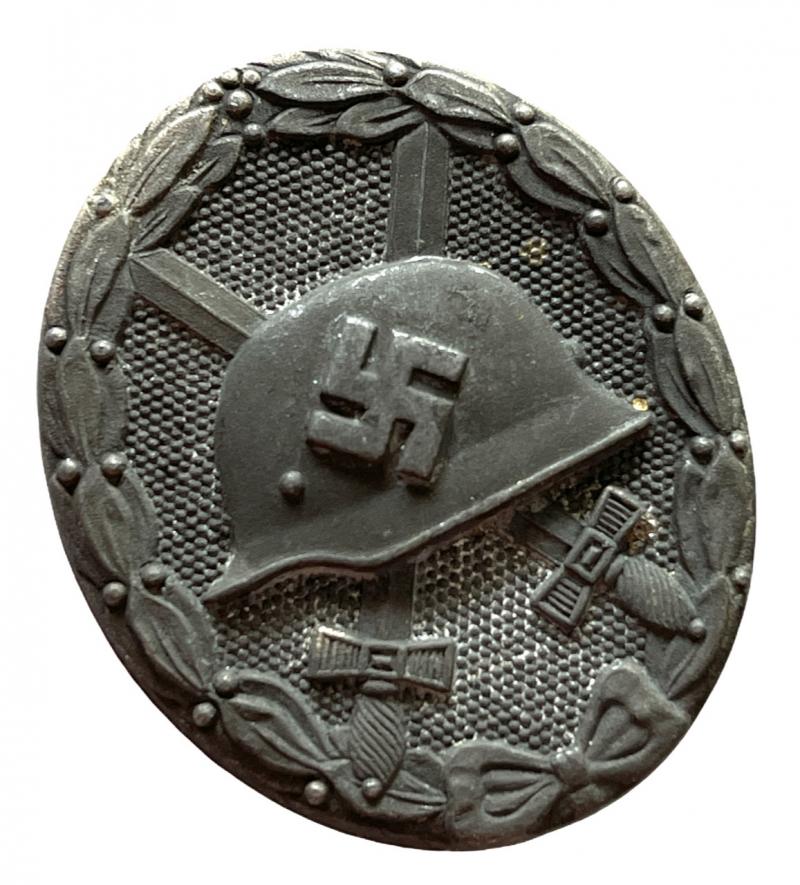 Wehrmacht Wound Badge Silver Nice used mid war Wehrmacht wound badge in silver for 3 combat wounds Nicely maked marked “65” which is “Klein & Quenzer” In used but good condition