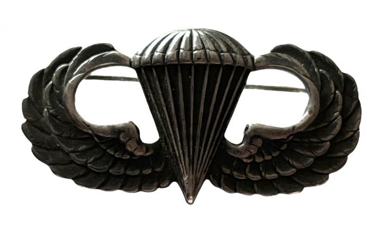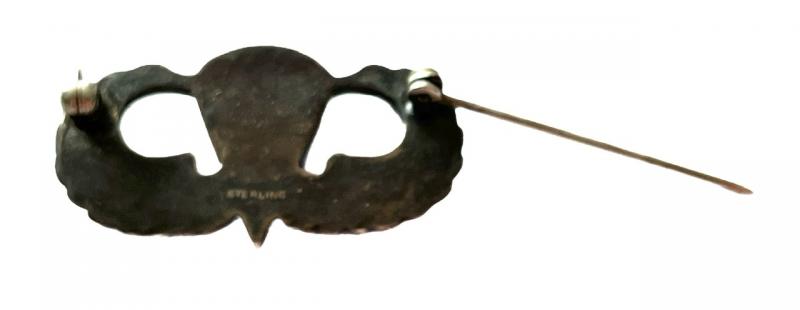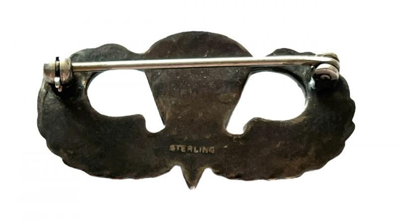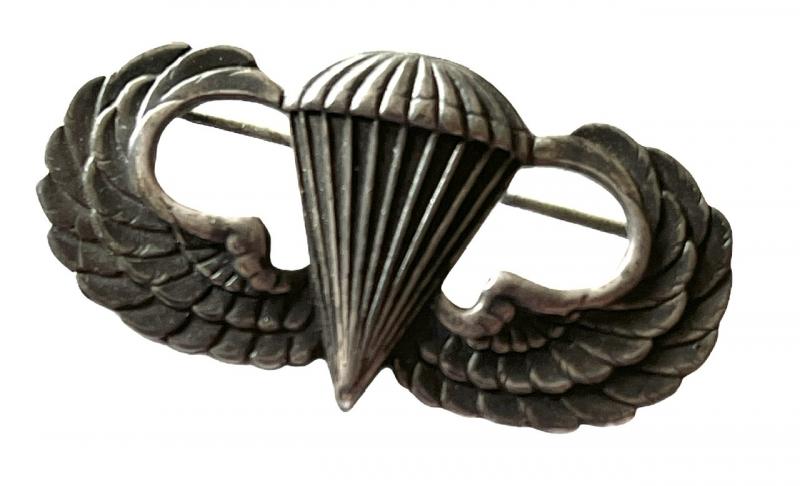 Very nice textbook US WW2 “Parartrooper” jump wing. Nicely marked “Stirling Silver”