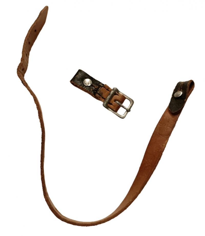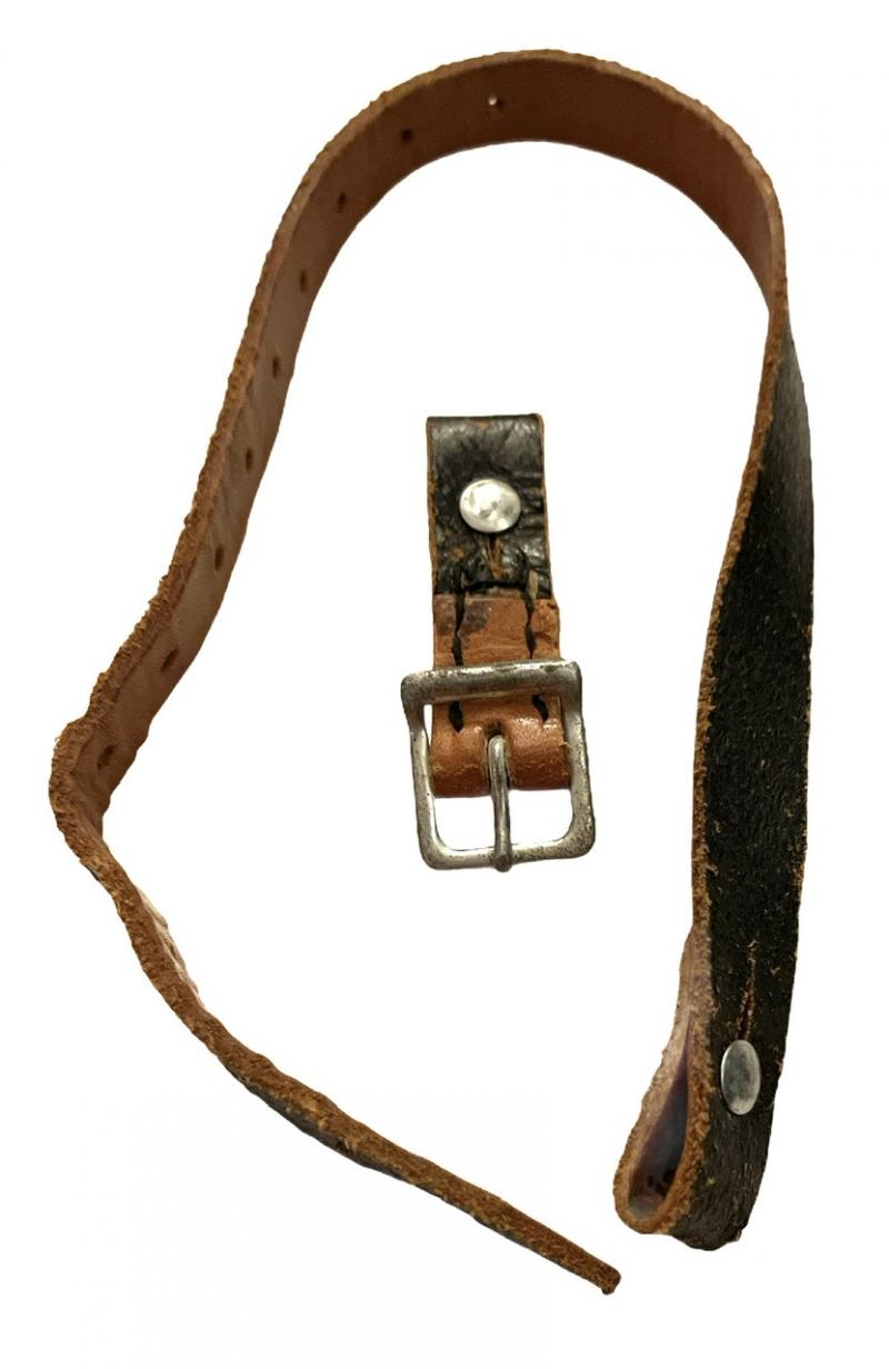 Wehrmacht Combat Helmet Strap Very nice used, unmarked leather Wehrmacht combat helmet strap. Strap with metal buckle. Great to complete a nice Wehrmacht helmet In used but very good condition.