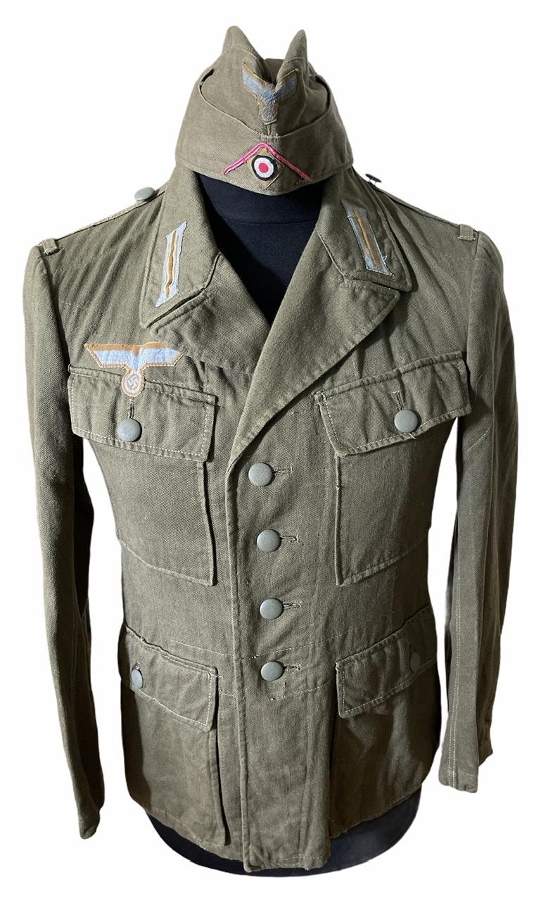Very nice used DAK tunic, breeches and DAK “Panzer” side cap.