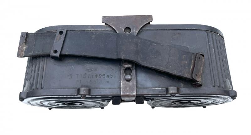 Designed for the Luftwaffe aircraft MG15 machinegun, but used with a special adapter on the MG34 aswell. Nice used drum “Flieger number marked” with the original leather carrying strap. Overal in good condition.