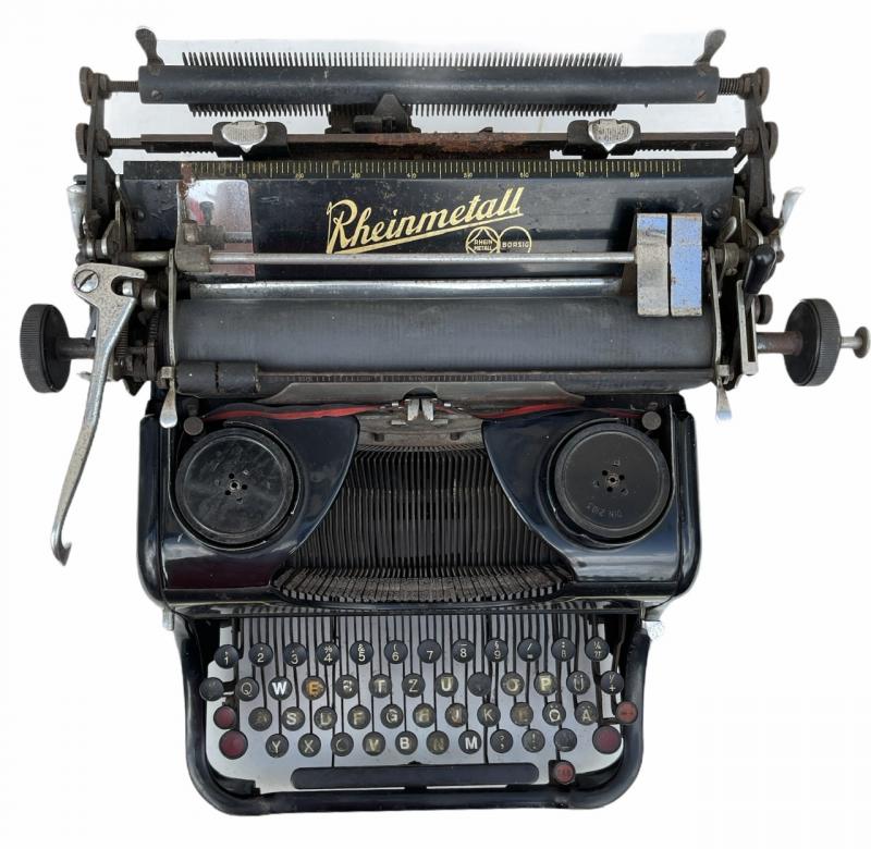 Kriegsmarine Typewriter Made by “Rheinmetall, Borsig” Nice used heavy Kriegsmarine typewriter Marked on the side “Kriegsmarine “ In good condition. Great for (Bunker) display!