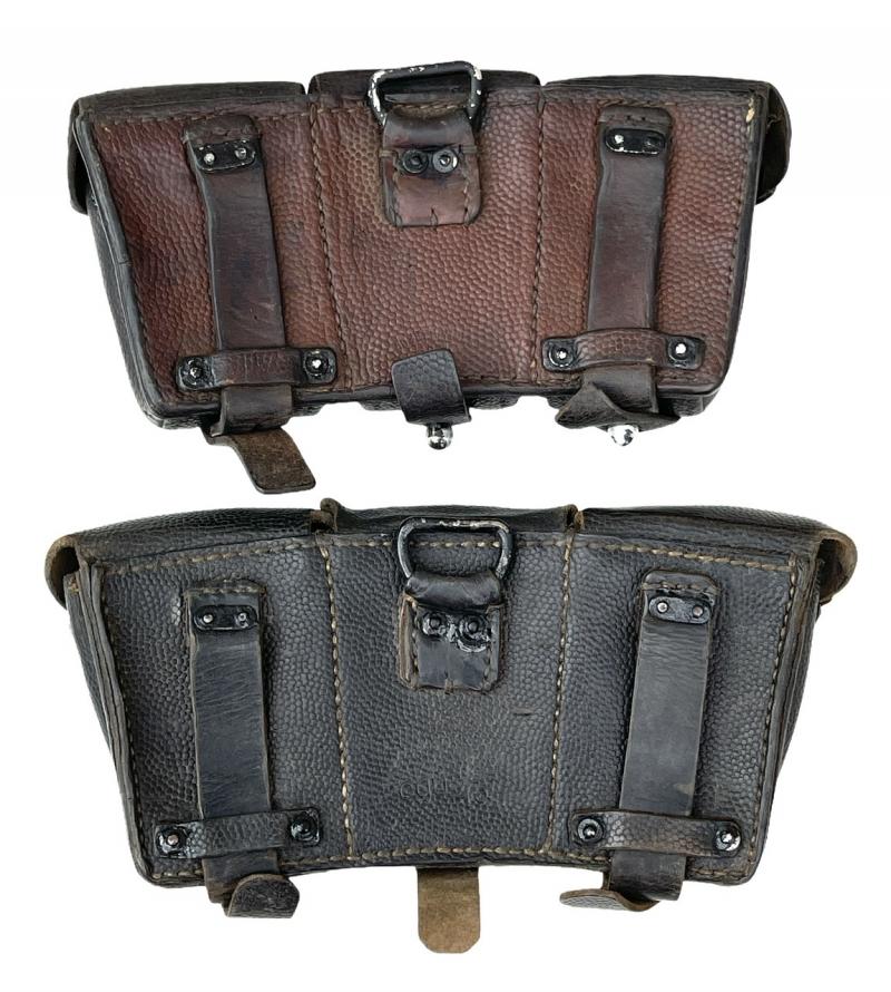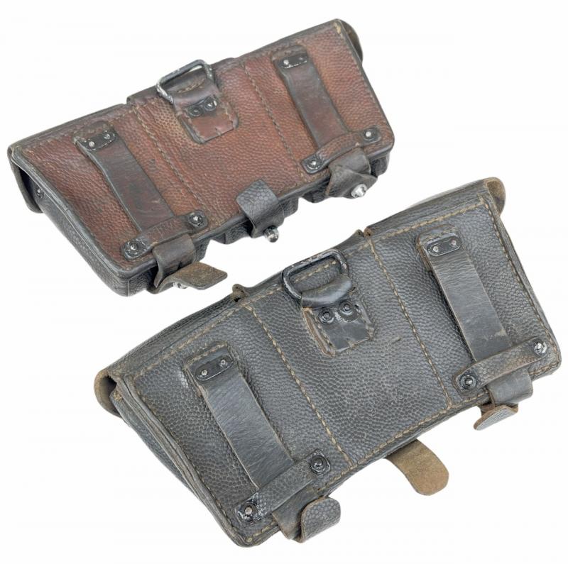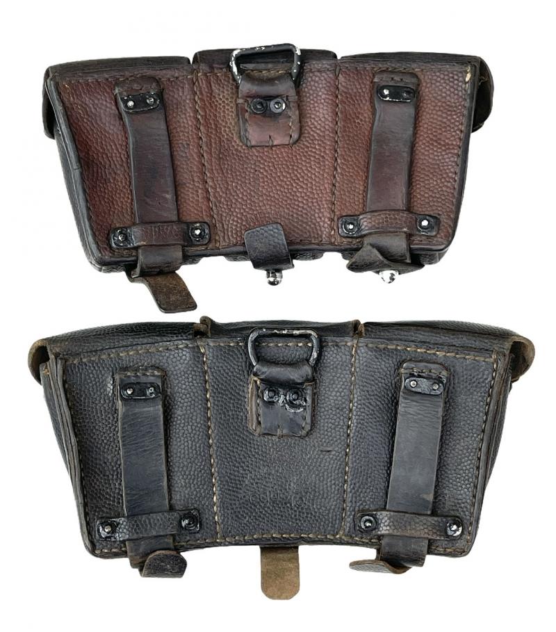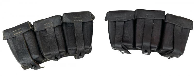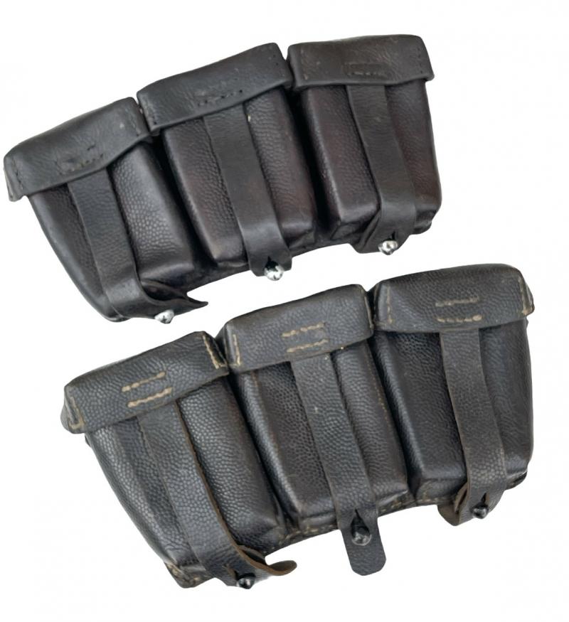 K98 Ammunition Pouches Nice early learher K98 ammunition pouches Both maker marked and dated They each would hold 6 stripper clips with 5 rounds of Cal. 8x57 mm K98 ammunition In used but very good condition.