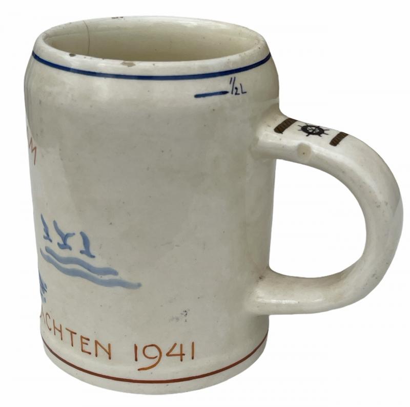 For the “M.H.A.” (Marine Helferinnen Abteilung) Rotterdam, Kriegsmarine Weihnachten 1941” very nice used but very good beerstein with was made only for this Kriegsmarine unit in Holland and only a few may have survived history! Great decorative item for a Kriegsmarine collection!