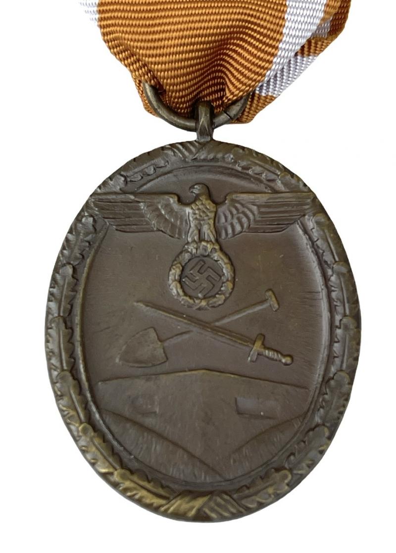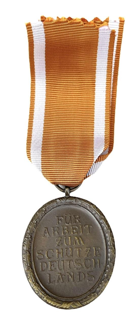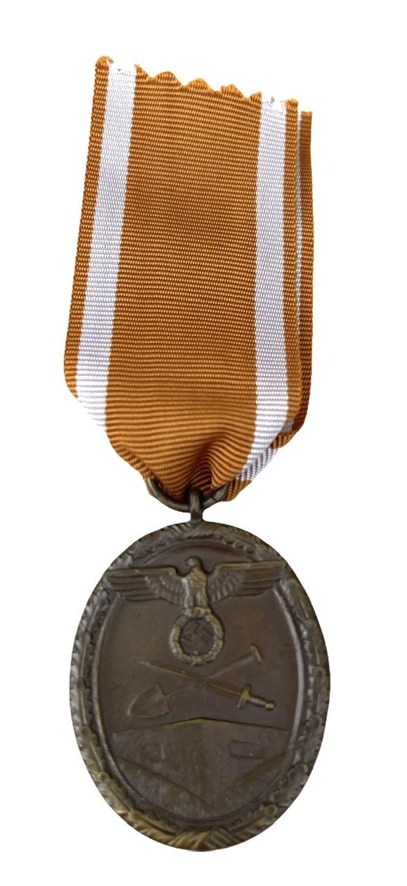 Schutzenwall Ehren Abzeichen Westwall Medal Very nice westwall medal with original ribbon. In its original carton pouch. In very good condition.