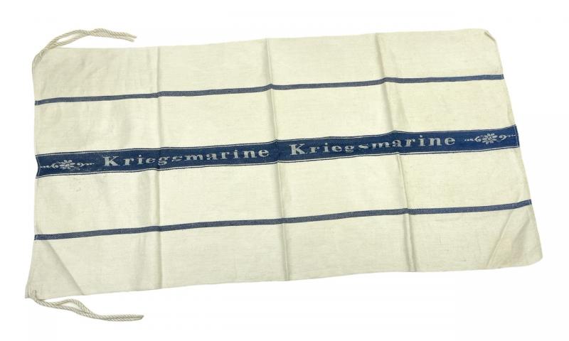 Kriegsmarine Towel Kriegsmarine towel in mint condition. And with its original cords Nicely Kriegsmarine marked (woven) Impossble to upgrade!