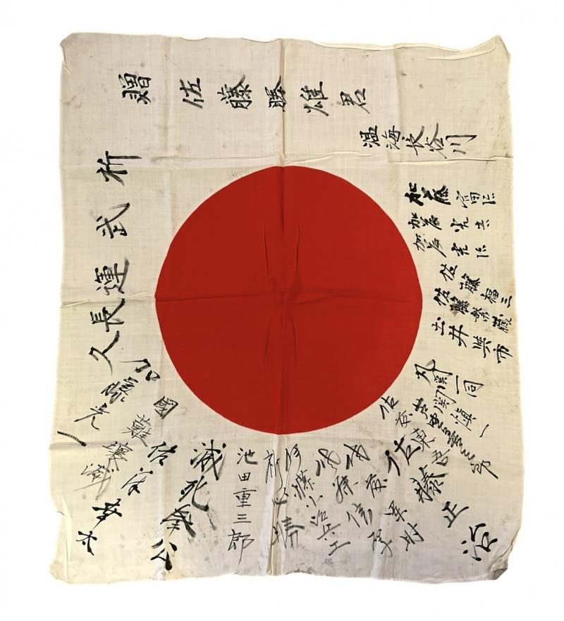 These flags were taken bij Japanese soldiers in to a battle, Family, friends and fellow soldiers and officers did write good wishes on the flag