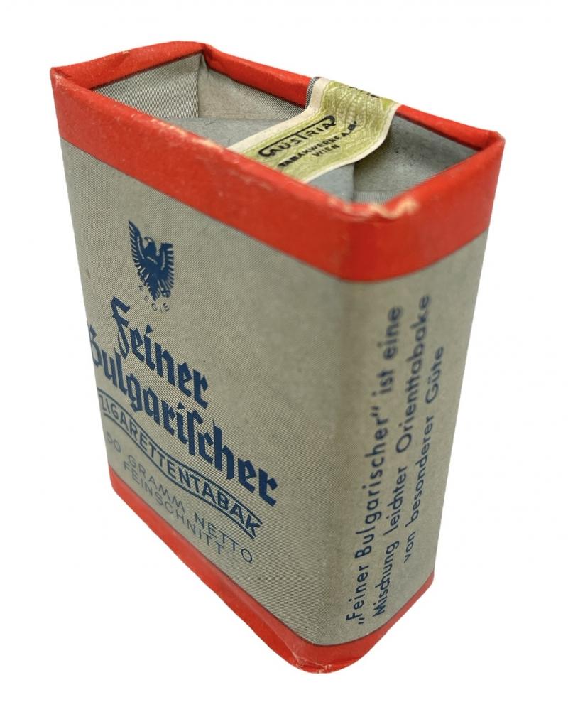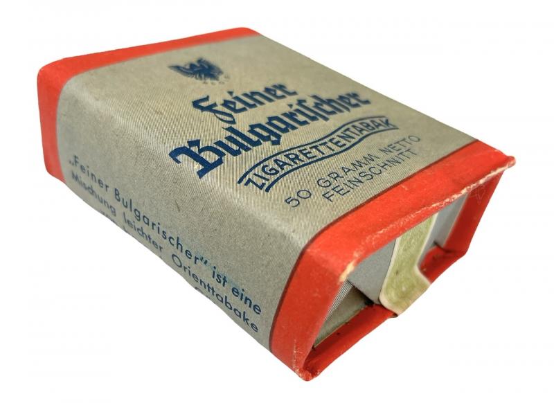 Wehrmacht era Cigarette Tabaco Very nice package Wehrmacht cigarette tabaco with content. “Feiner Bulgarischer” With “Third Reich” seal with eagle and swastika. Great for display! In very good condition.
