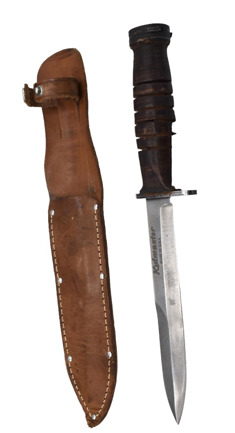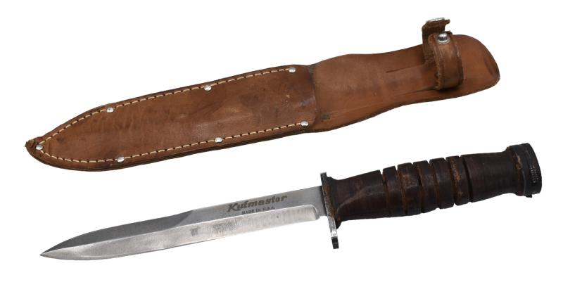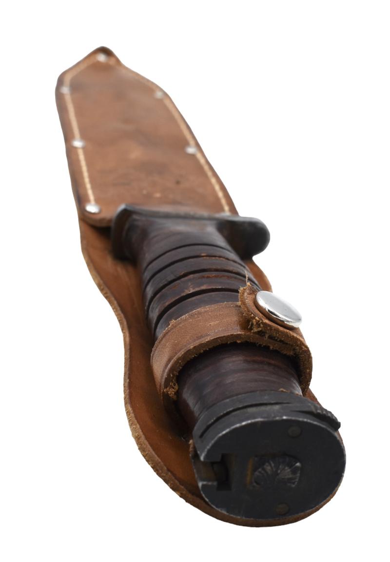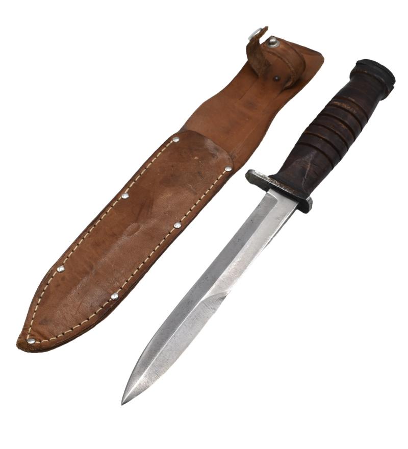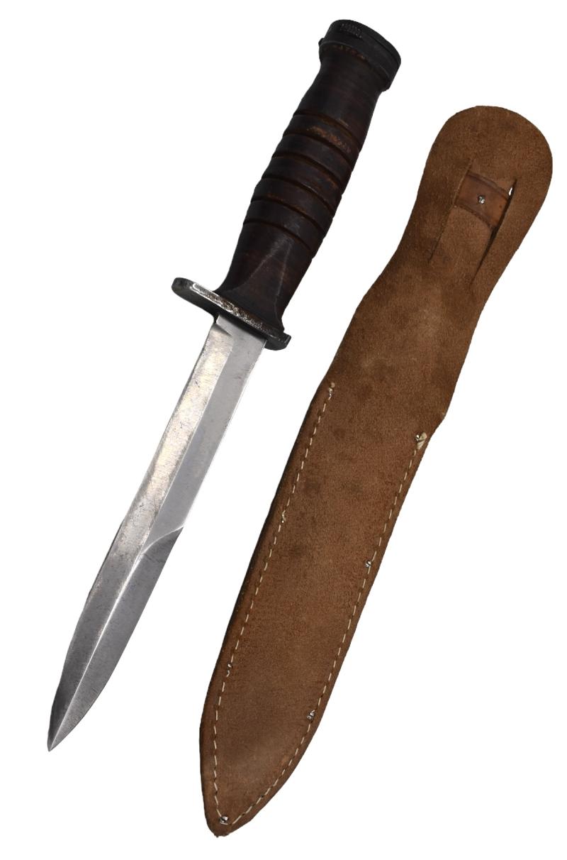 Nice used US M4 bayonet in leather scabbard converted to combat knife