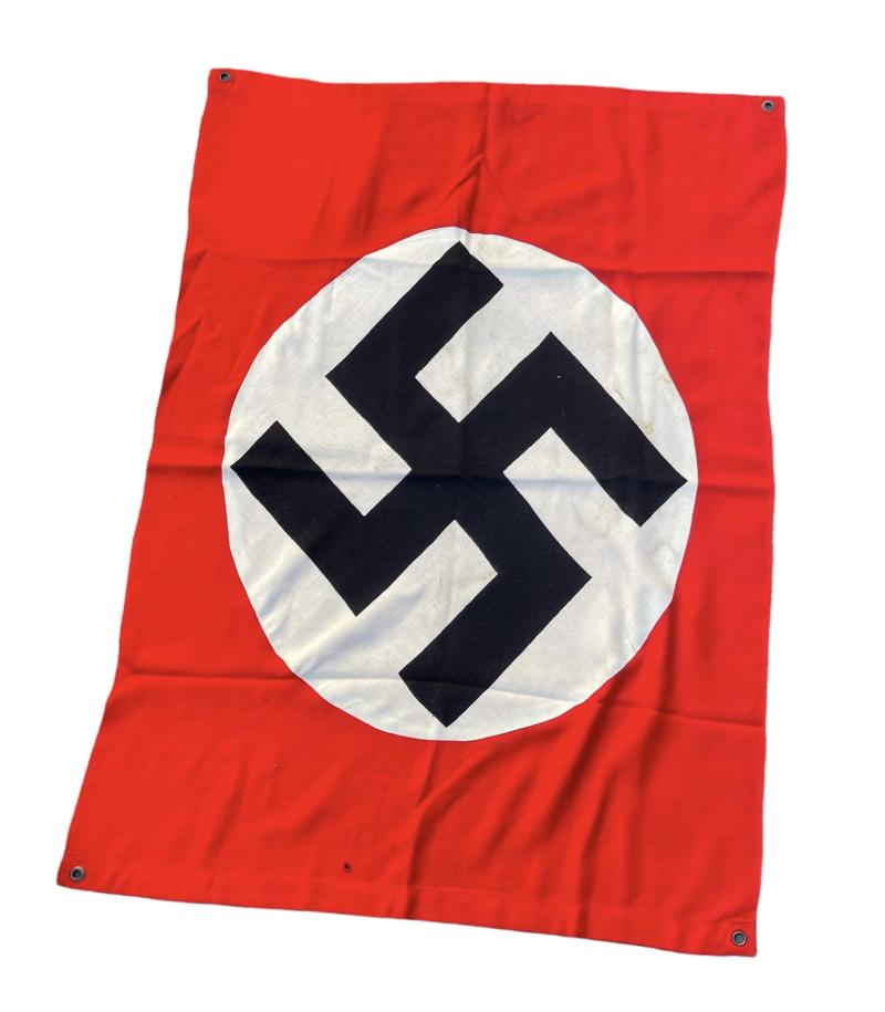 Vet nice mint US WW2 vetran bringback Wehrmacht vehicle recognition flag in size “70cm x 100cm” with the swastika on one side and 4 metal rings in the corner to keep the flag in place on the vehicle. This size was used on “Kubel wagen, Swimmwagen and heavy motorcycle’s with side car”. For the troops in the spearhead of the attack. So support fighter planes did not destroy there own troops! Impossible to upgrade!!!