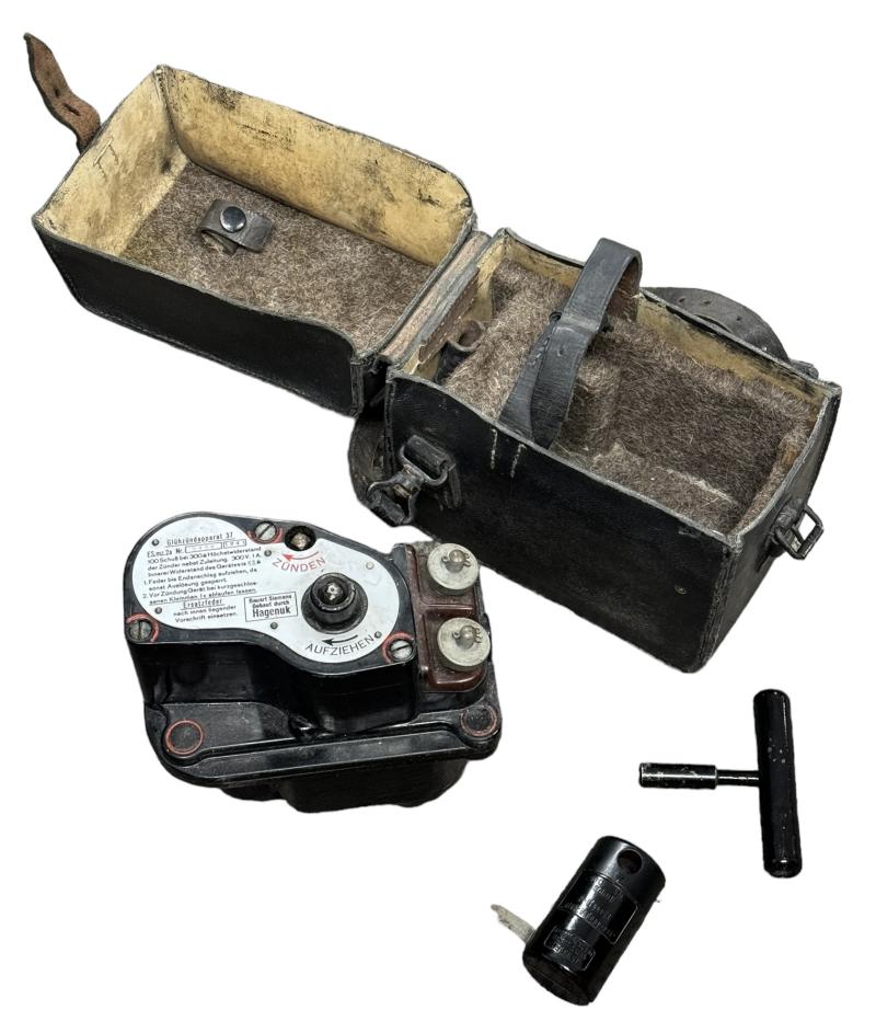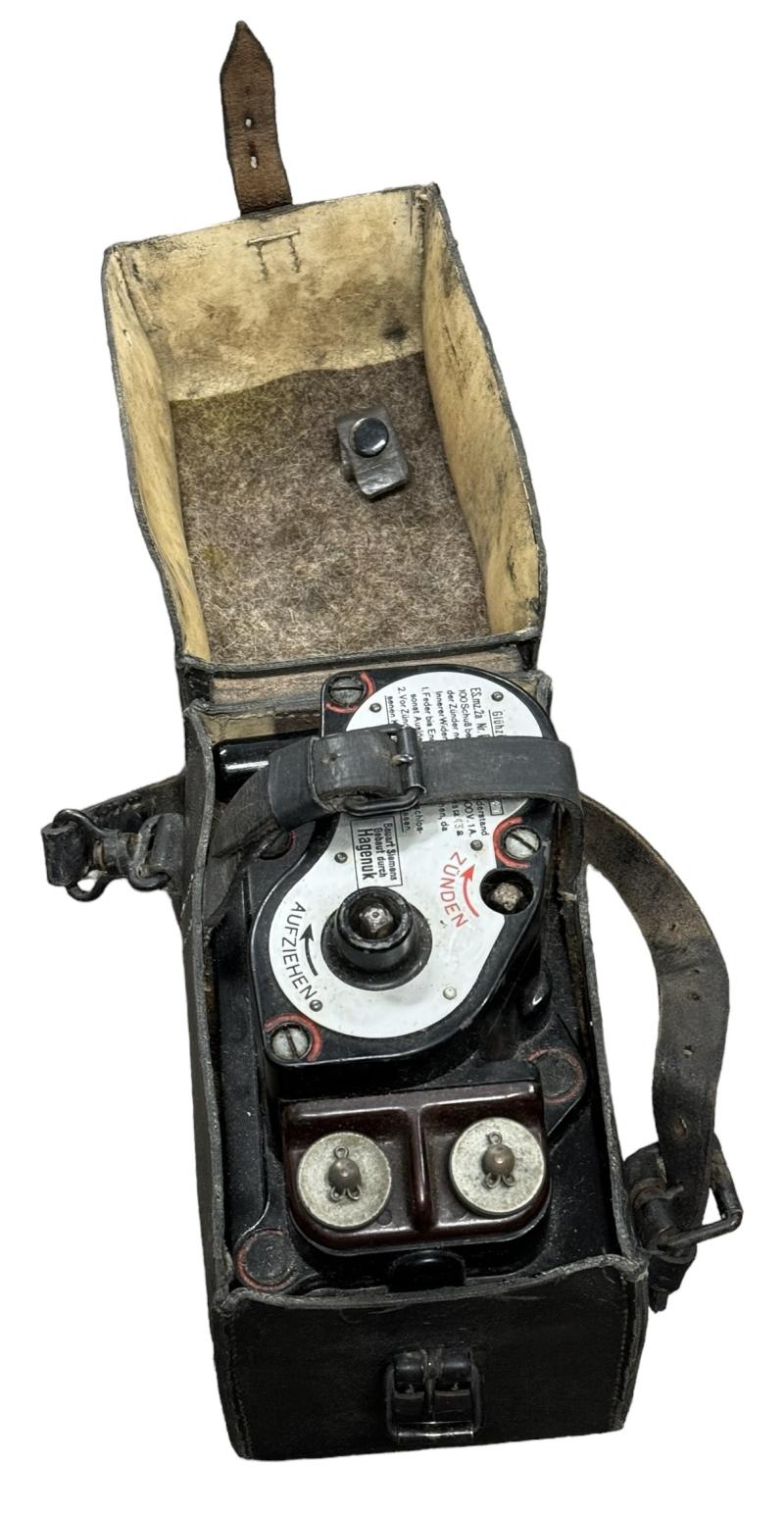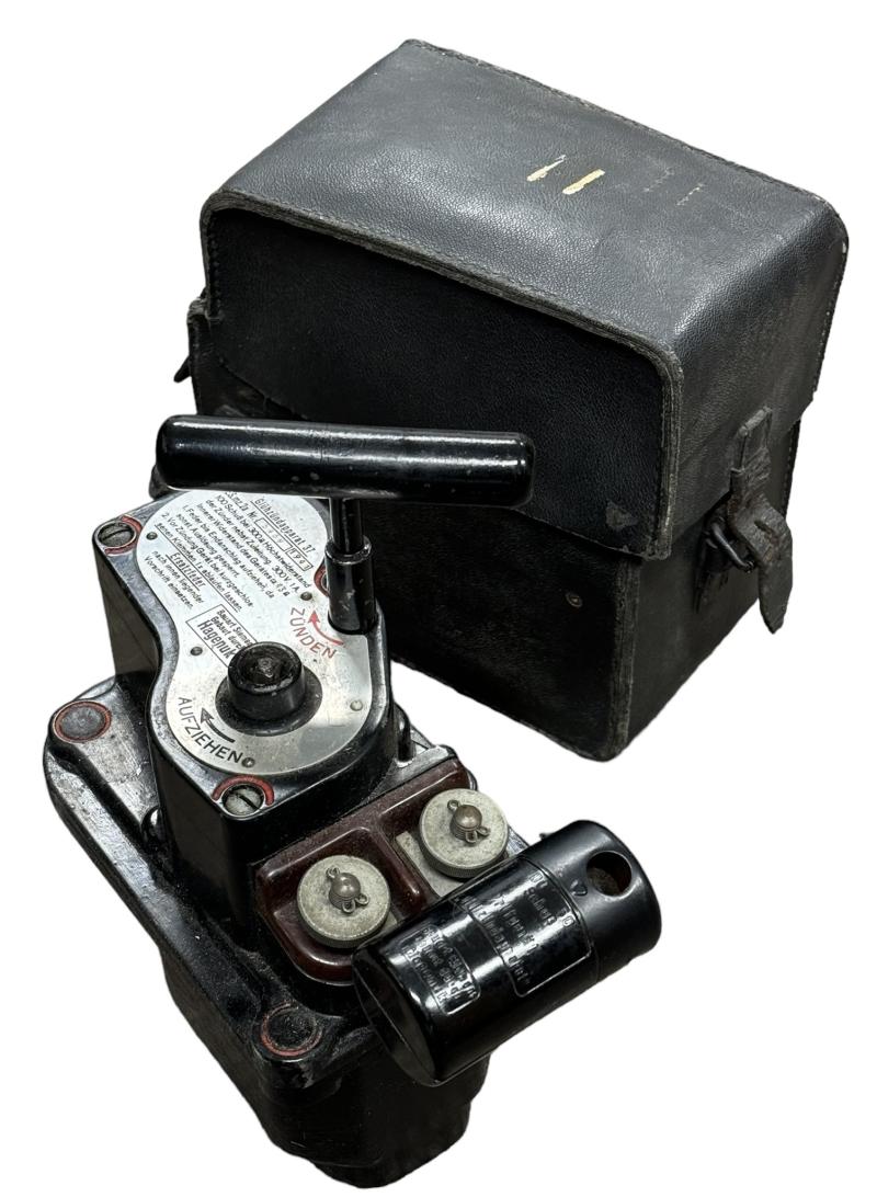 Complete Wehrmacht blasting machine “Glüzund Gerät 37” with electric power tester and blasting key.