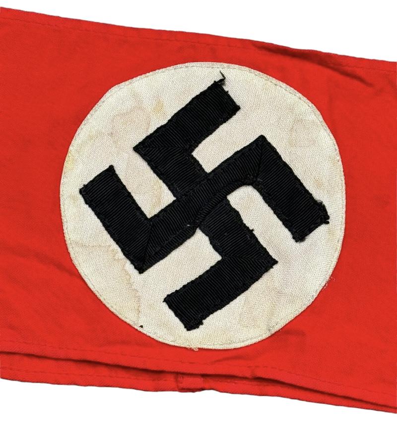SA/NSDAP armband Nice used condition SA/NSDAP armband. “RZM” paper tag is present. Brought back home by an American WW2 veteran. Great on a SA tunic or an armband collection.