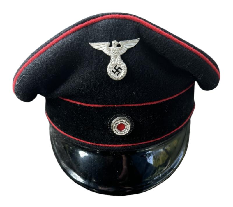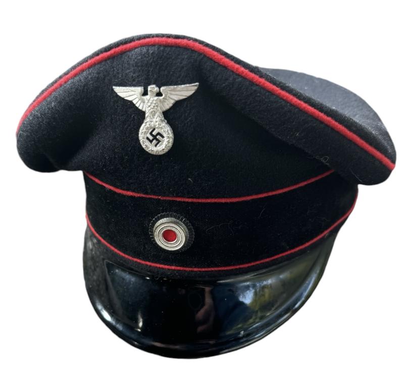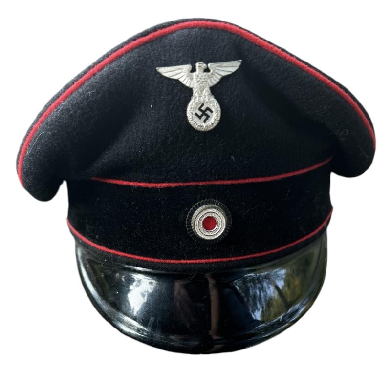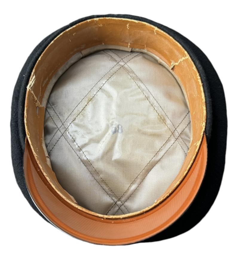 Very nice visor cap of the Third Reich mining workers. “Berg Bau” in good size “58” and with its original metal insignia. Nice sadel shape visor in very good condition. Great for a headgear collection!