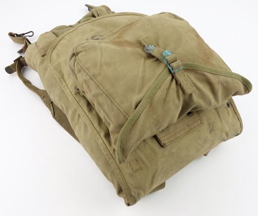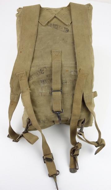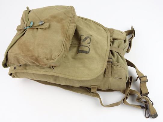 US WW2 Backpack Nice used early type US WW2 backpack Complete with mestin pouch and extention piece and all webbing straps. In used but very good condition.
