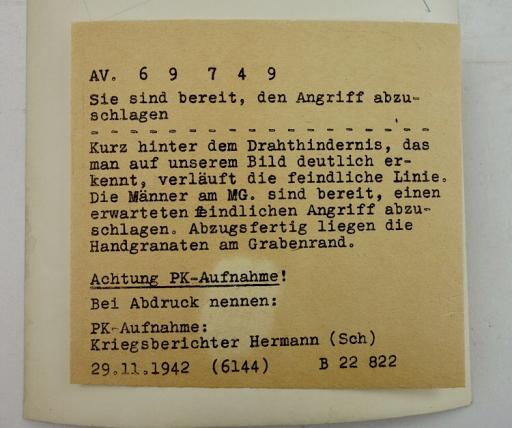 Propaganda Company Press Photo Very nice Wehrmacht Propaganda Company press photo with Wehrmacht machine gun crew with MG34 on heavy tripot and with M24 stick grenades. In very good condition.