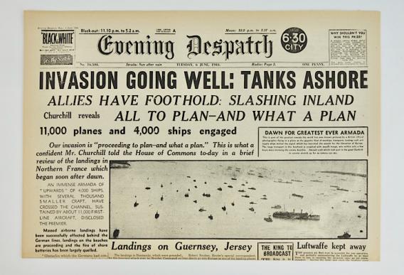 British WW2 News Paper Very nice wartime British WW2 news paper “Evening Despatch” with headline “Invasion Going Well, Tanks Ashore” Dated Juni 6 “1944” In very good condition.