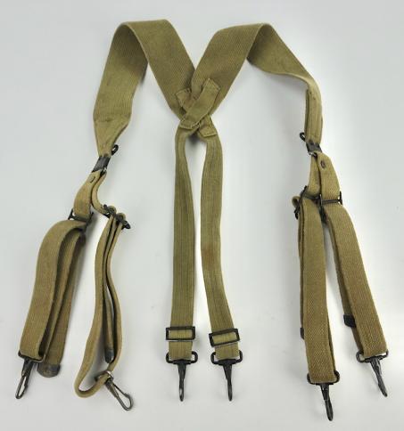 US WW2 Suspenders Very nice US WW2 suspenders Maker marked and dated “1943” In near mint condition.
