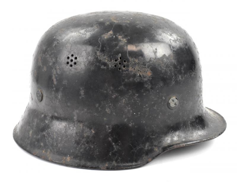 Nice used Third Reich civil Police helmet with its original black paint and its original liner and helmet strap (strap unfortunately broken) overal a very nice used Third Reich Police helmet in good condition.