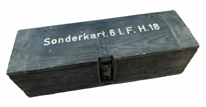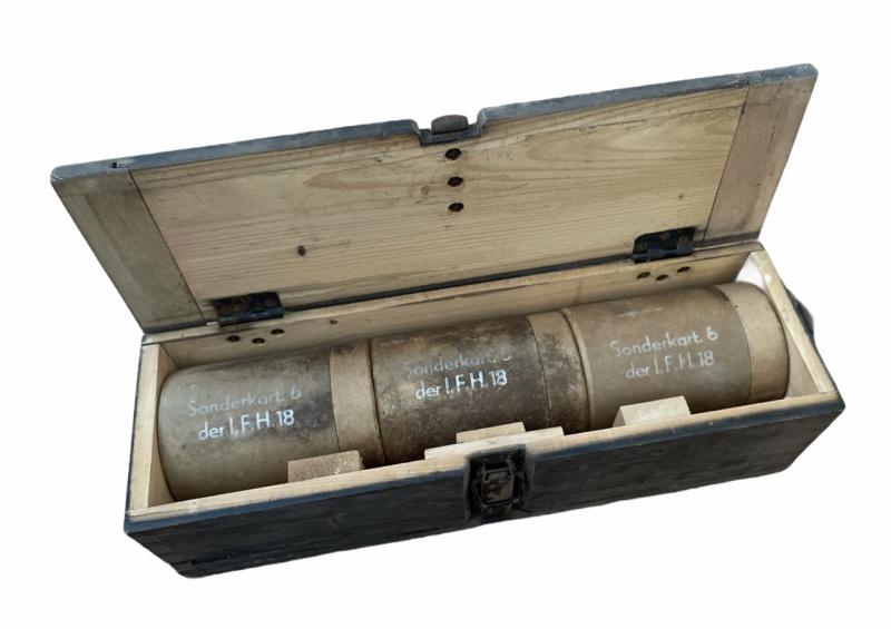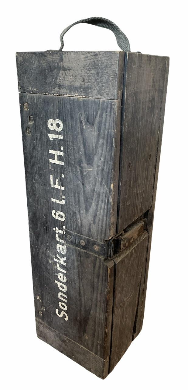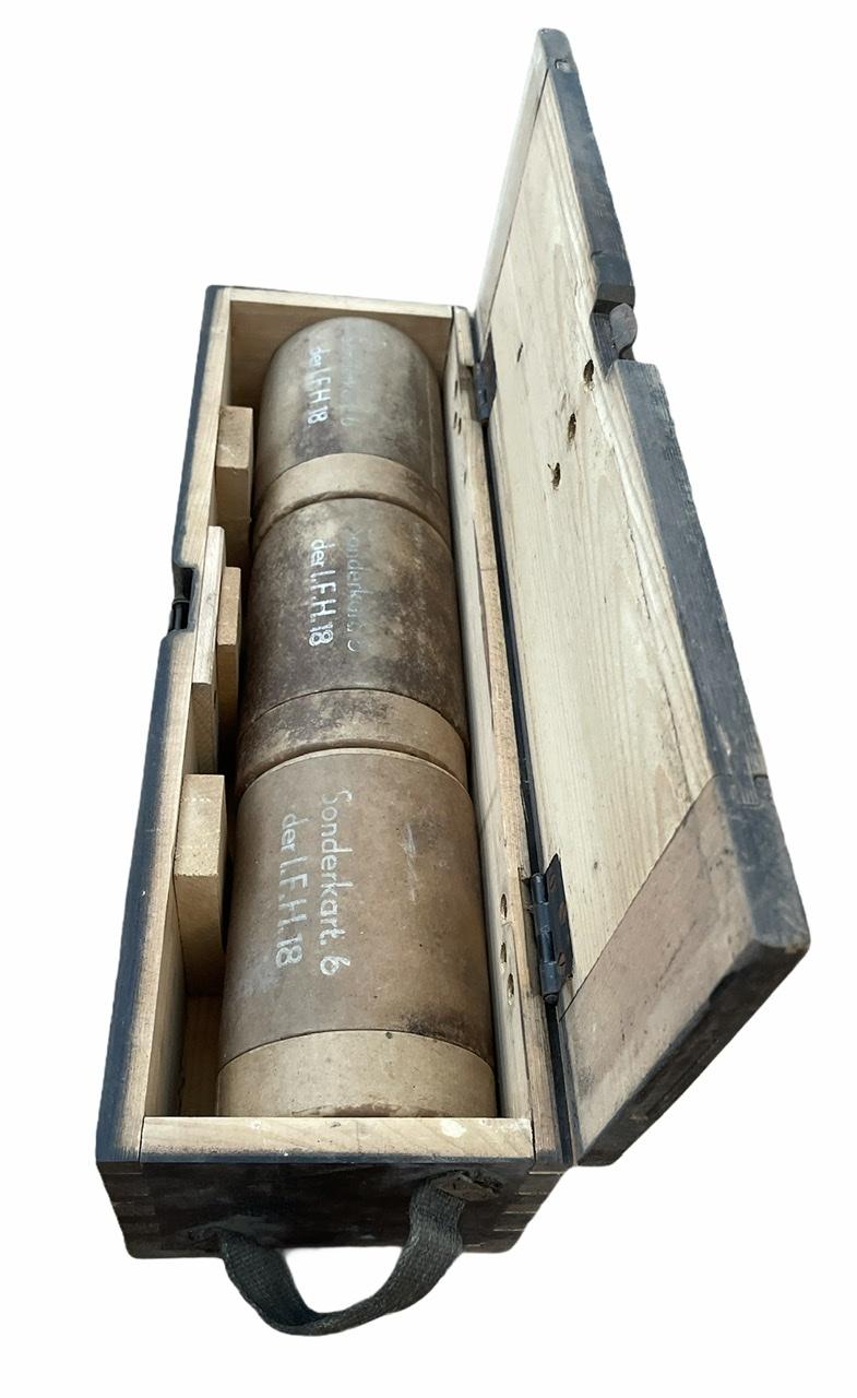 Very nice wooden Wehrmacht ammunition case with 3 very nice clipboard tubes for the ”6 L.F.H.18”
