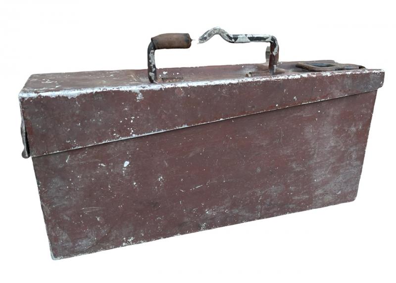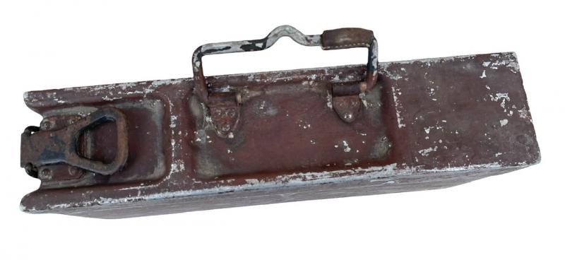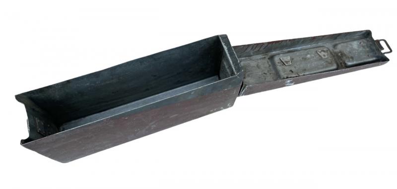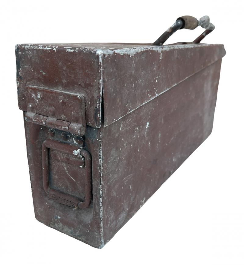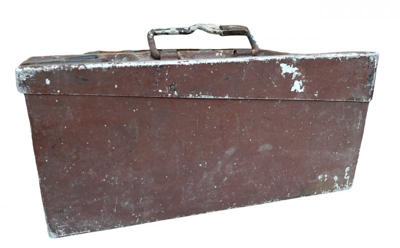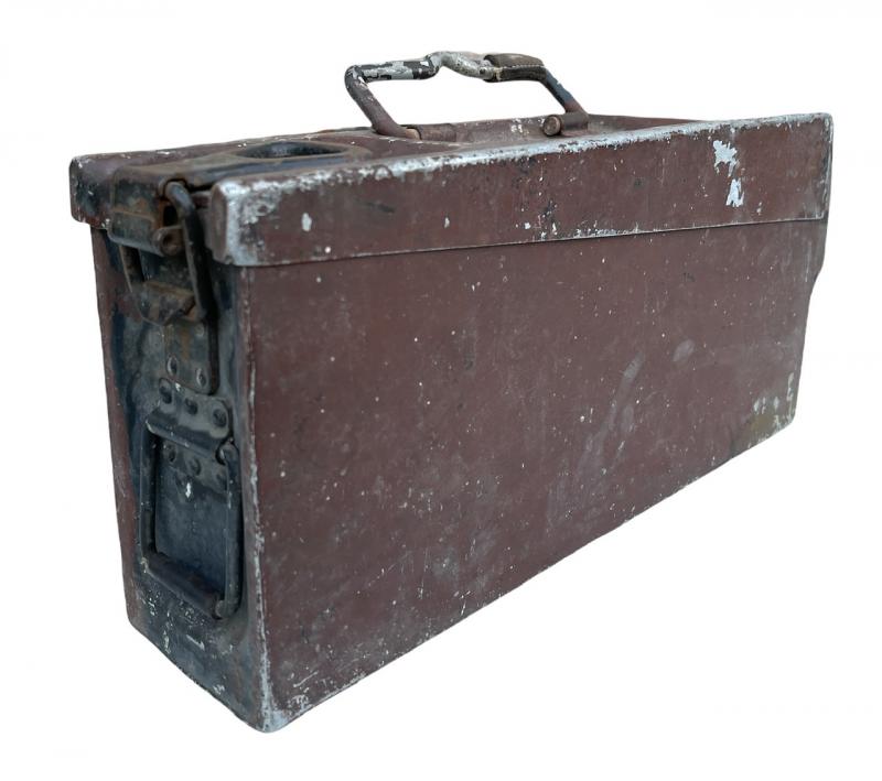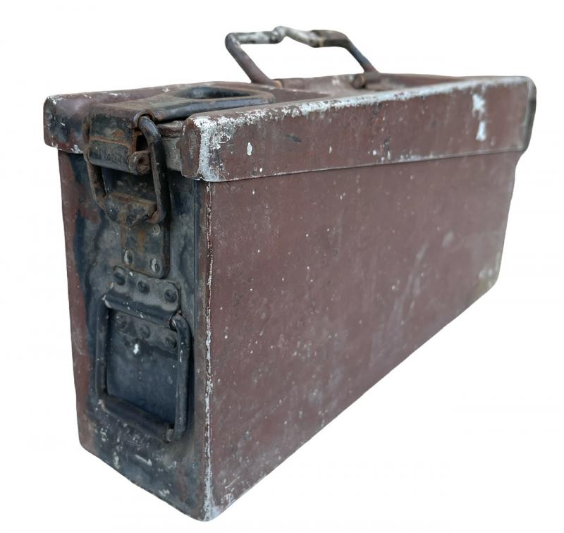 Nice early aluminum made Wehrmacht MG34/42 ammunition box in red-brown camo paint on top of the field-grey factory camo paint.