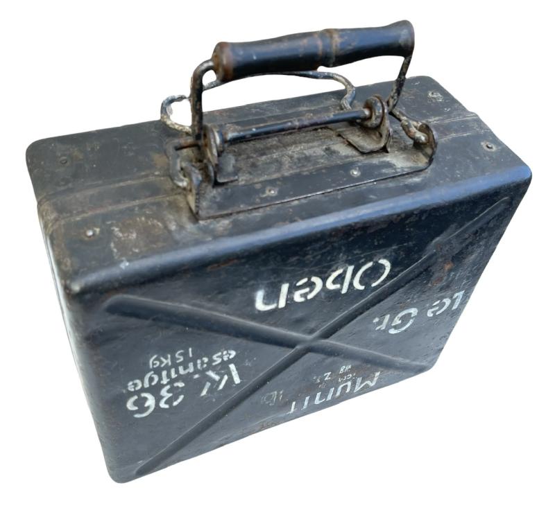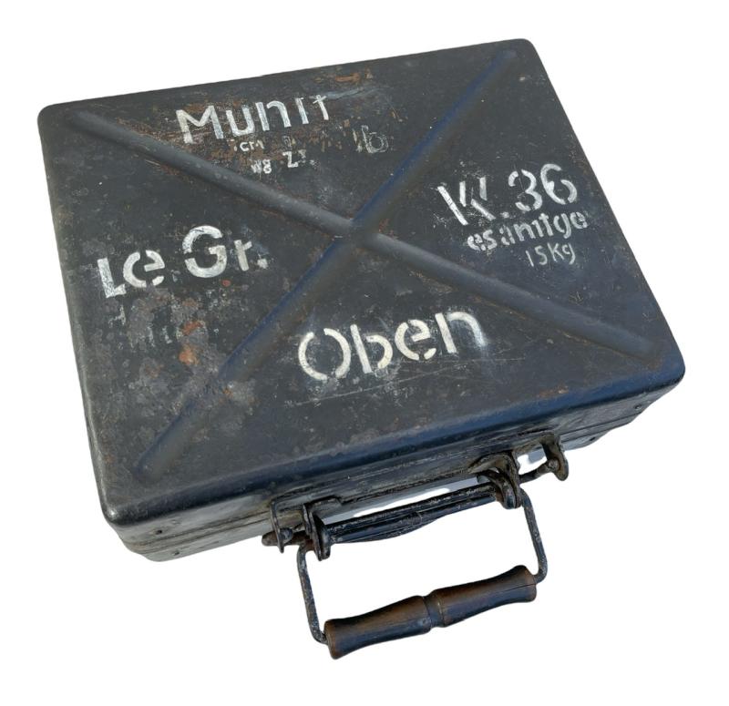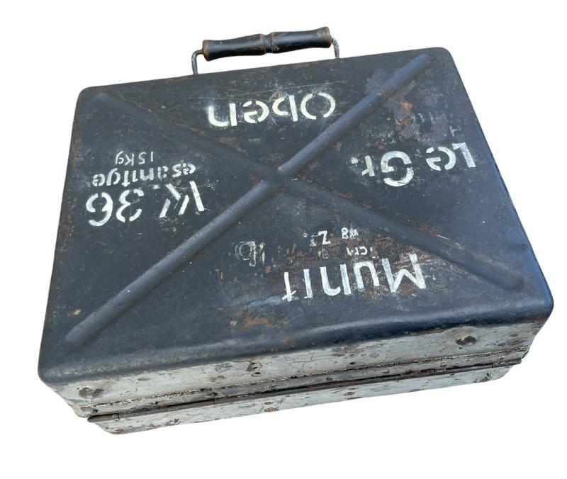 Nice used steel made Wehrmacht 5cm mortar grenade transport case “Munition Le. Gr. W. 36”