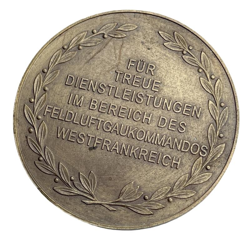 “Für treue Dienstleistungen im bereich des Feldluftgaukommandos Westfrankreich”