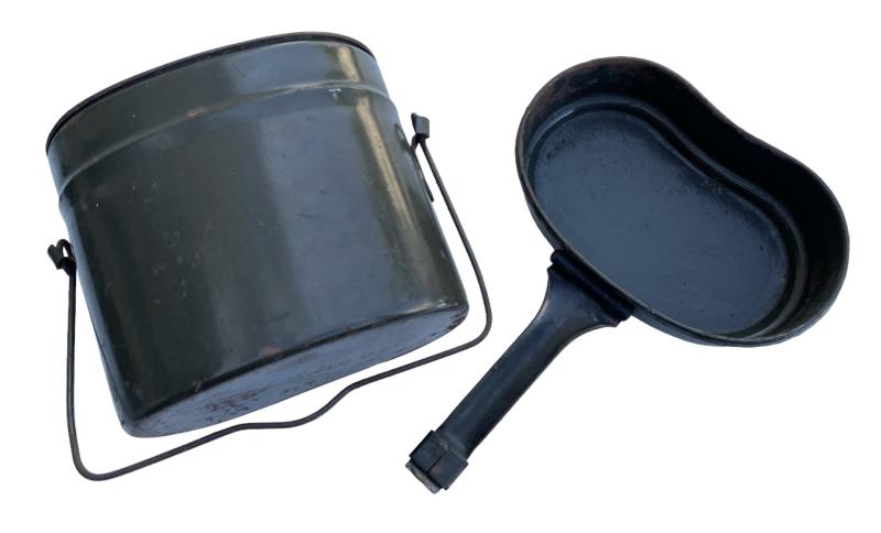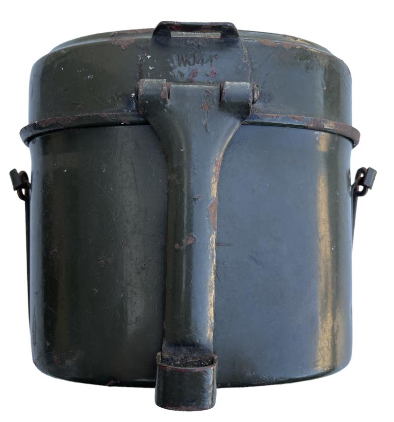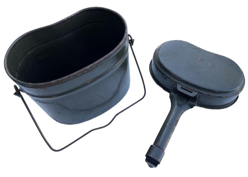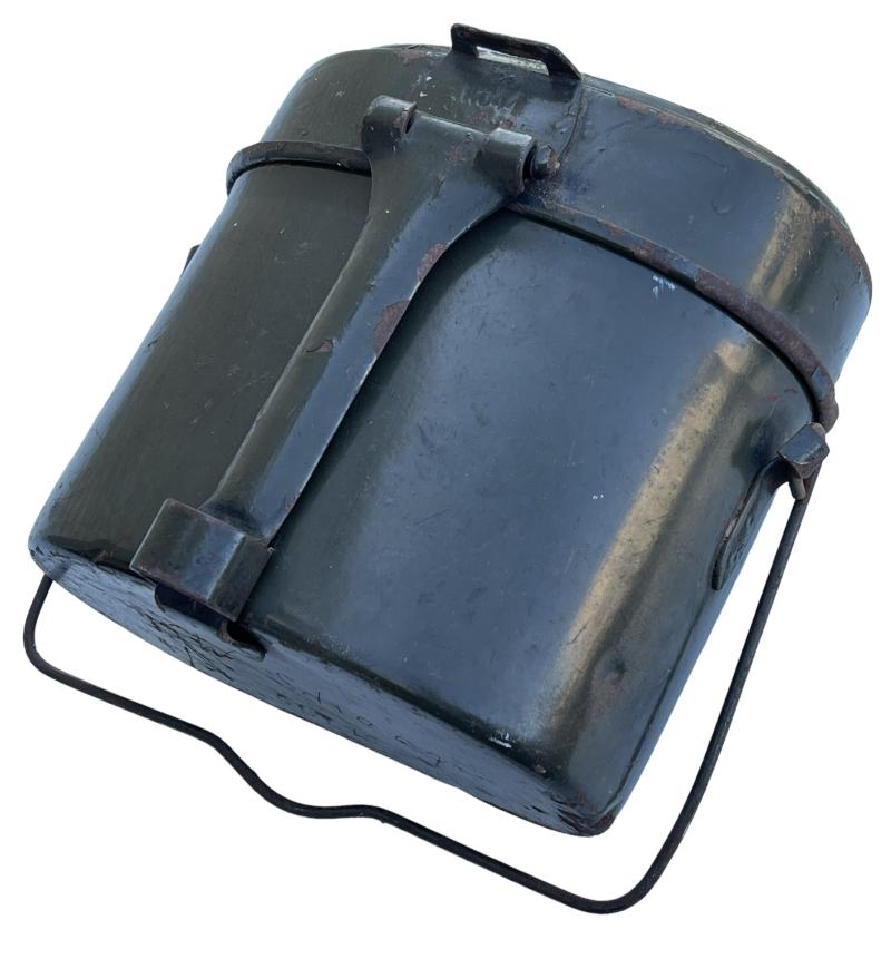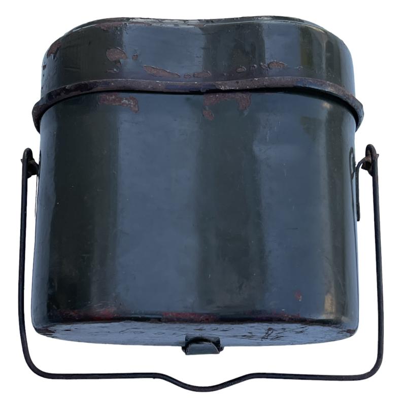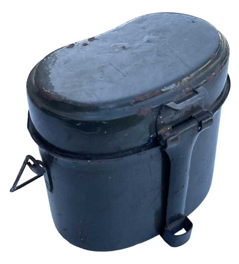 Nice used aluminum made Wehrmacht M31 mestin in 98% of its original green enamel like camo paint